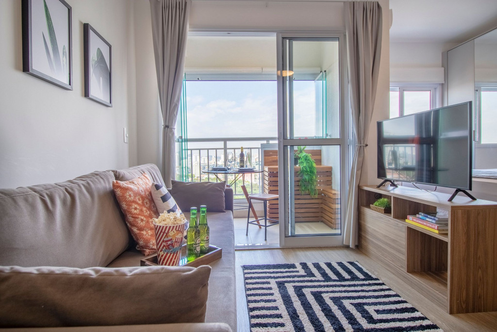 - Varanda com vista incrível: Desfrute de uma paisagem deslumbrante que vai deixar você sem palavras. Imagine acordar todas as manhãs e contemplar de sua varanda a beleza da cidade de São Paulo que nos cerca. Além de ter dois banquinhos e uma mesinha para o seu conforto.