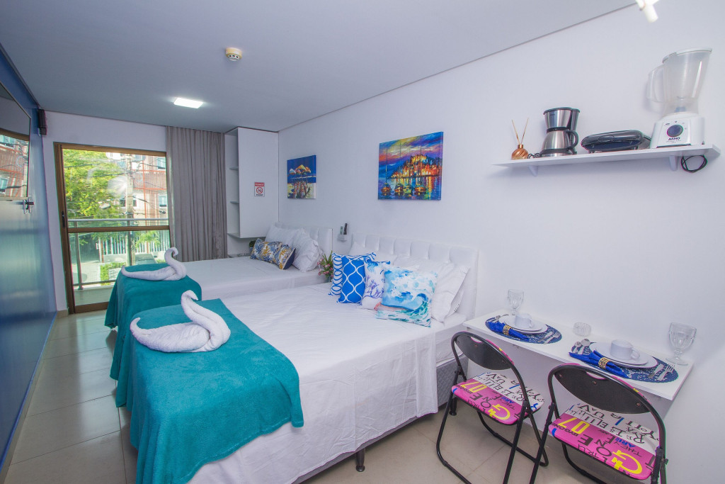 • Estacionamento gratuito sem manobrista, com uma vaga por estúdio;