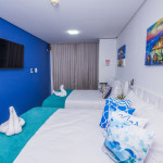 Nossos hóspedes apreciam as piscinas externas, parquinho infantil, e o estacionamento grátis sem manobrista (1 vaga). As principais comodidades no imóvel: Wi-Fi grátis no apartamento, TV Smart, ar condicionado split e chuveiro elétrico.