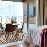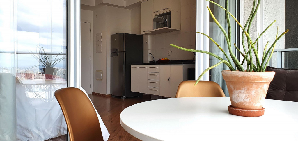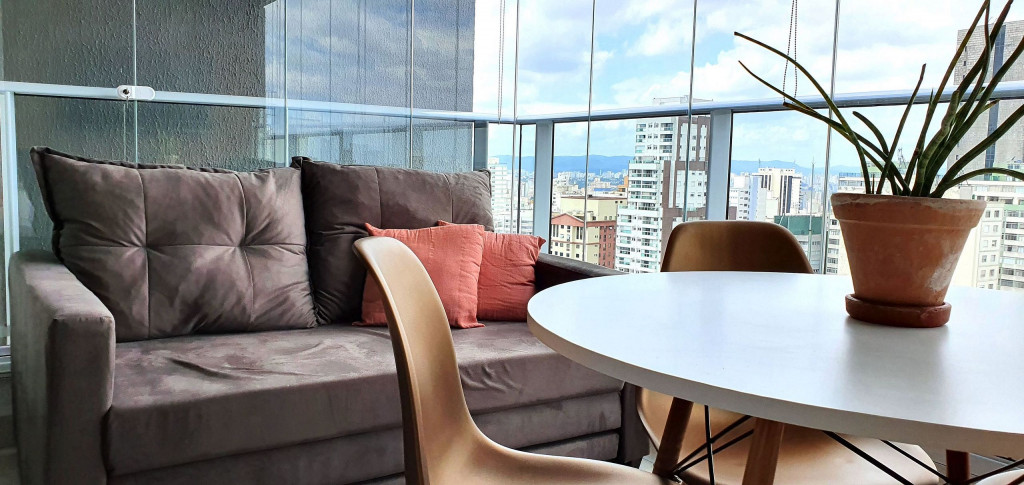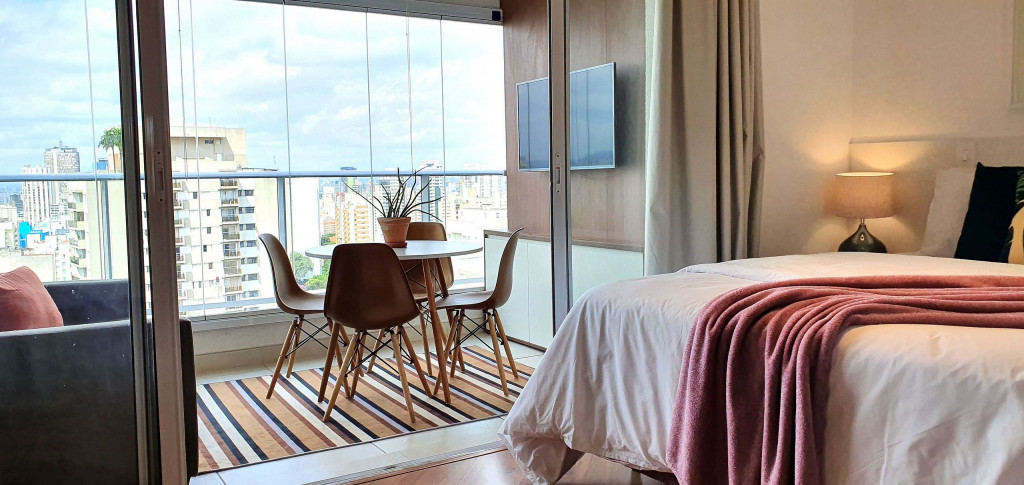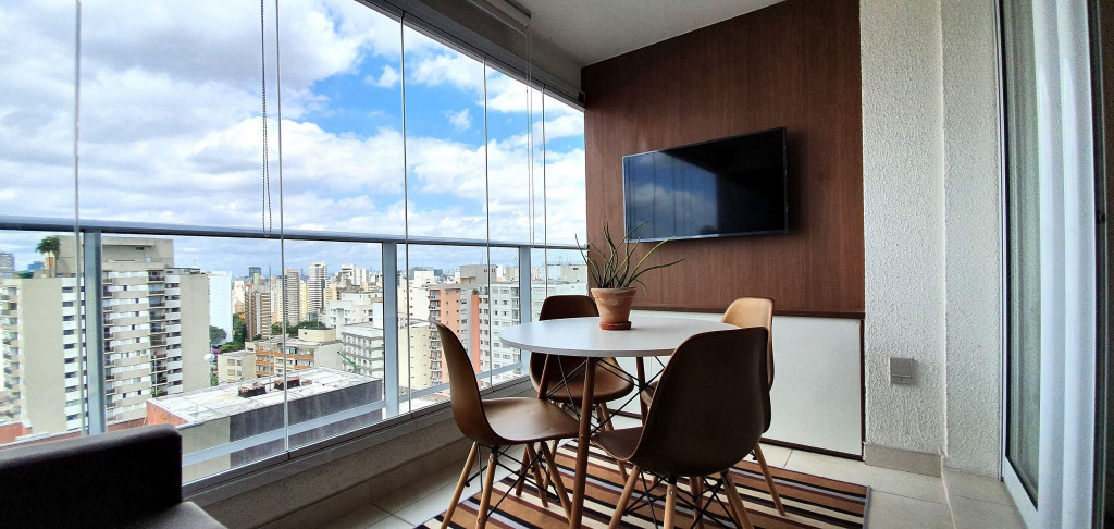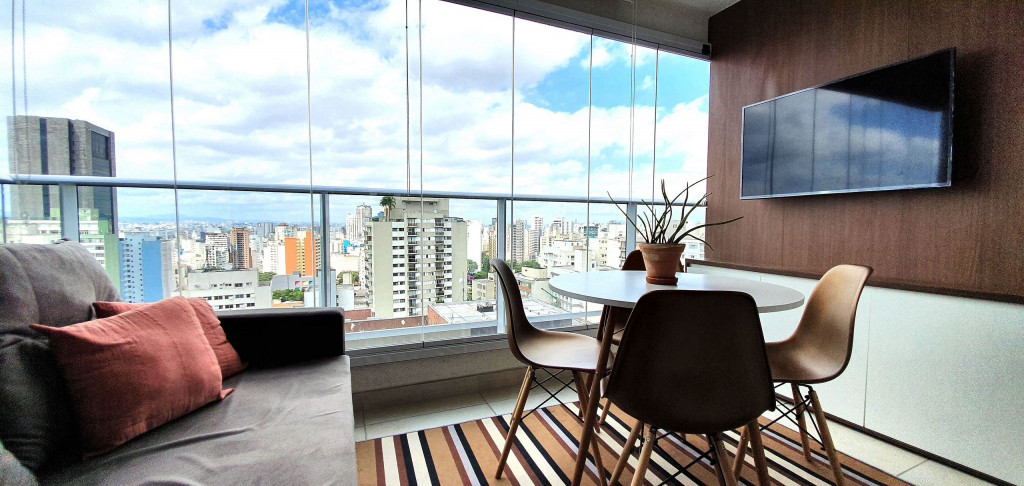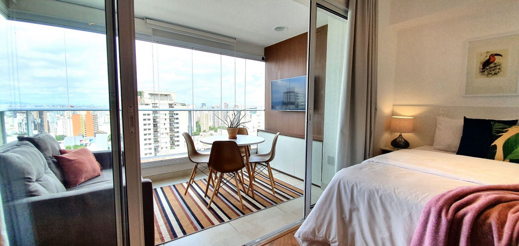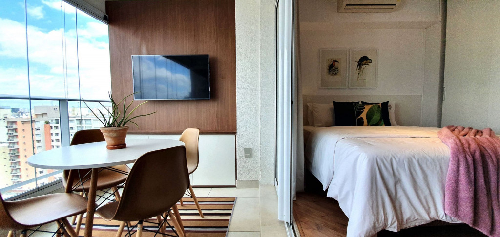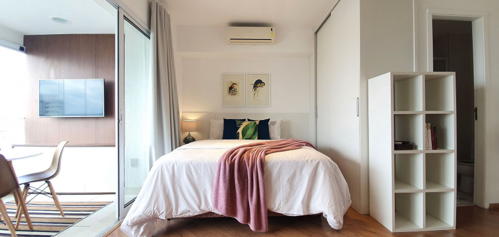 Este estúdio muito bem decorado tem uma cozinha completa, varanda com área de jantar, TV e sofá. Ele também possui AC e chuveiro no banheiro.Está situado no 18°, ocasionando uma vista ampla da cidade, além de ter uma decoração toda pensada pra deixar o espaço aconchegante, além de contar com um ambiente otimizado, com cozinha completa, varanda com área de jantar, um sofá super confortável.