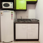 Ele é bem equipado com utensílios de cozinha como panelas, pratos, talheres, copos, microondas, fogão elétrico 2 bocas, sendo perfeito para a sua estadia.