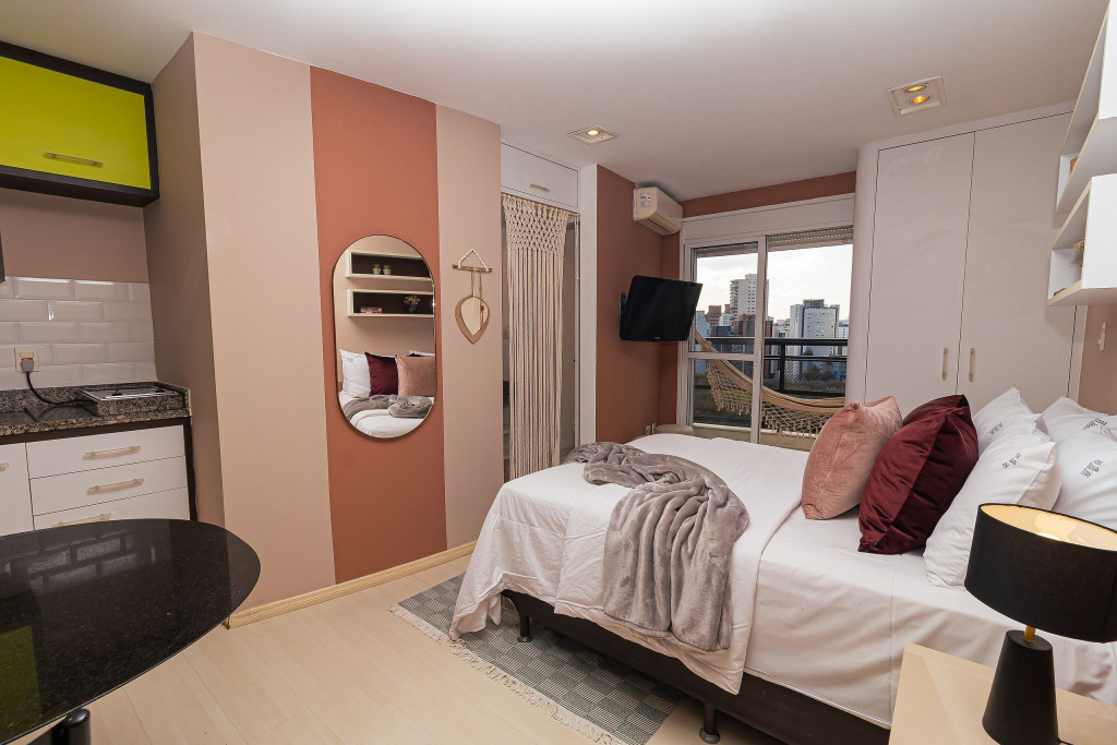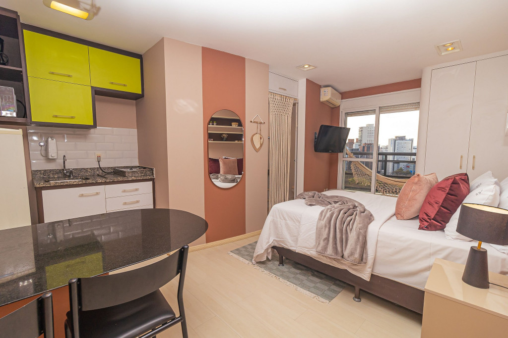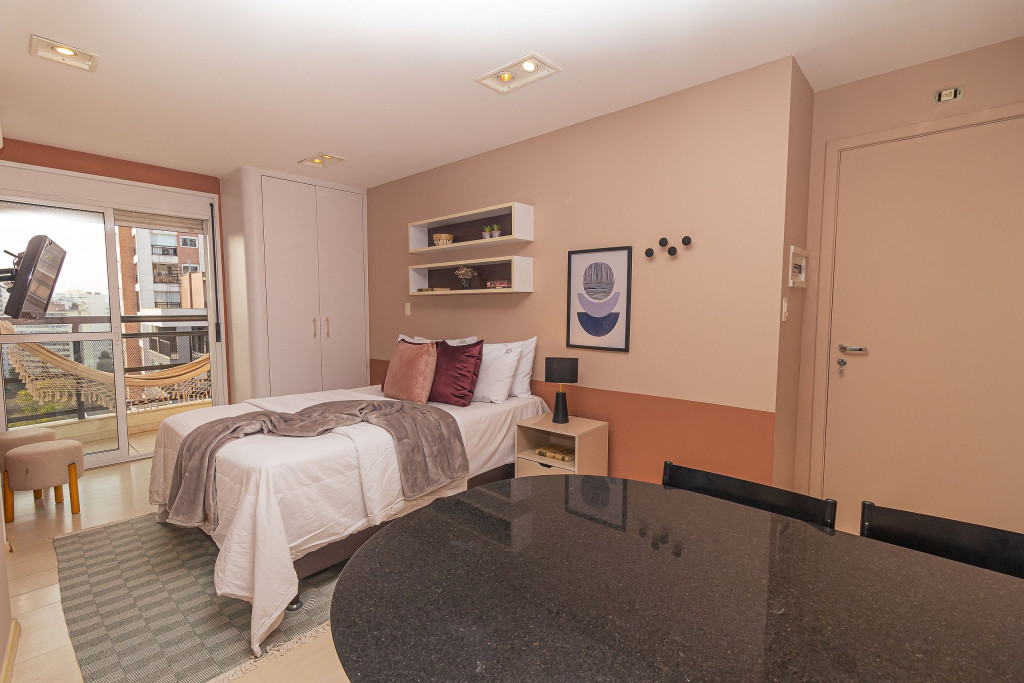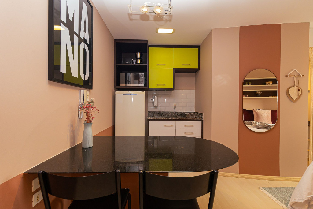 Esse bem decorado e funcional Studio Open Concept de 29 m2 fica em um prédio de alto padrão estrategicamente localizado próximo à Av. Paulista, metrô, Rua Augusta e Consolação e não está longe do centro