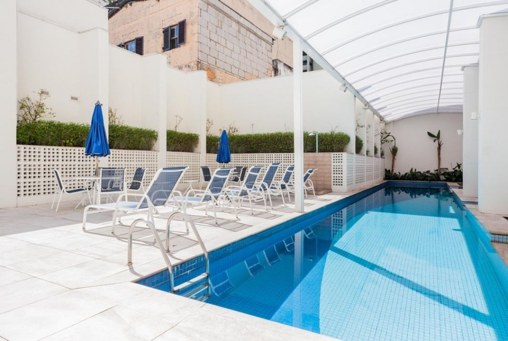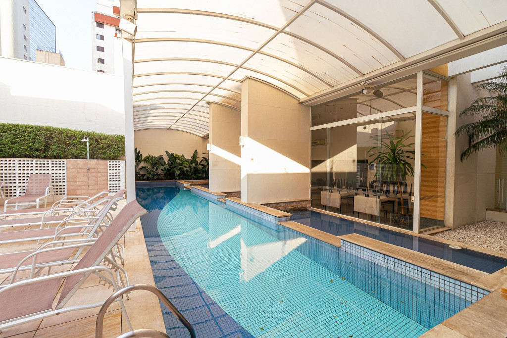 O condomínio possui uma linda piscina de 25m, cadeiras de piscina, academia com ar condicionado, sauna, vestiário, garagem, engraxador automático de sapatos, WiFi nas áreas comuns, sala de estudos, portaria 24 horas. Tudo isso sem custo adicional!