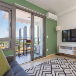 O apartamento possui varanda com uma linda vista, cozinha completa com utensílios básicos para culinária do dia a dia, ar condicionado, wi-fi, piscina, academia, garagem, lavanderia (paga a parte) e portaria 24 horas. Roupa de cama, banho, xampu e sabonetes estão a sua disposição.