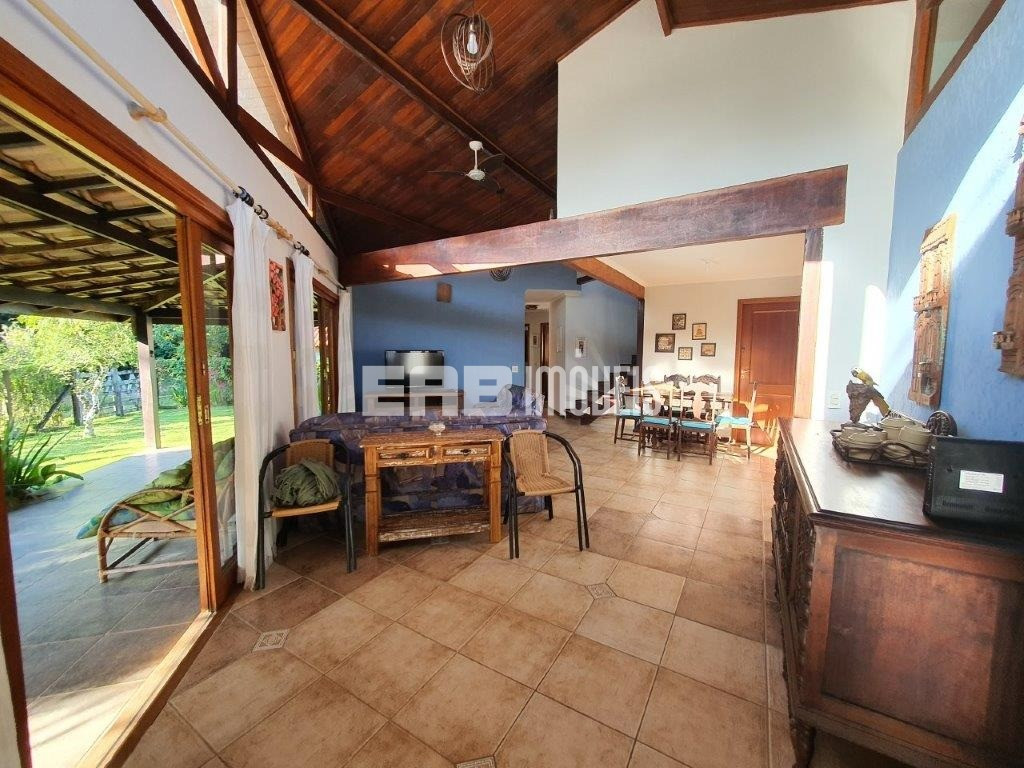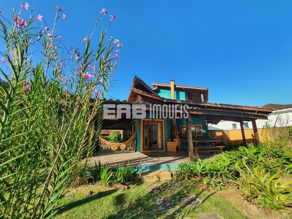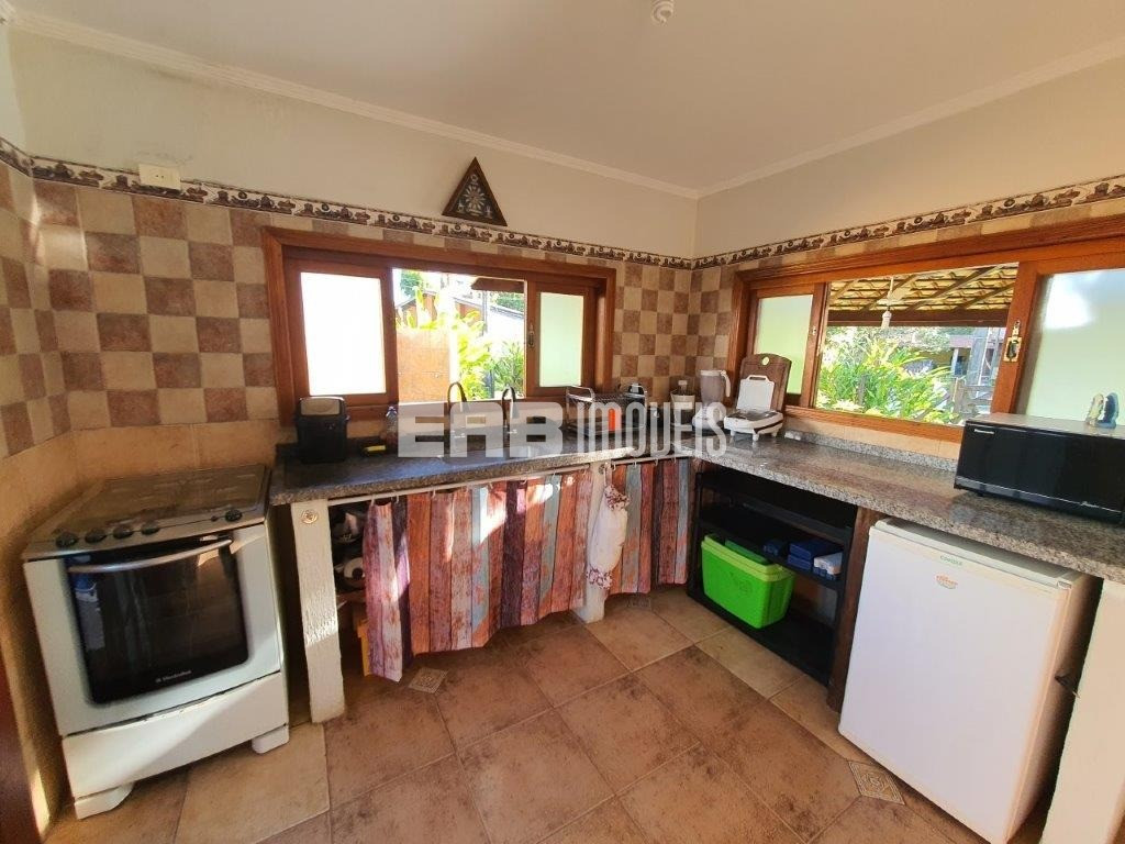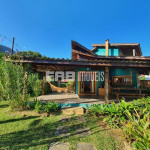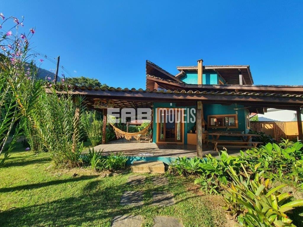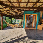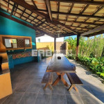 Casa próxima à praia e em frente à área verde. Cozinha integrada à sala. Varanda com redes, churrasqueira, fogão e forno a lenha. Jardim com paisagismo.