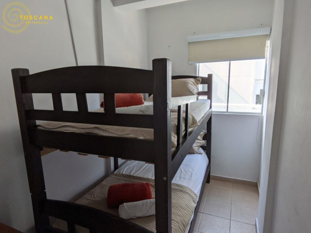 01 dormitório suíte com acomodação para 2 pessoas, cama beliche com estrutura de madeira.