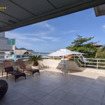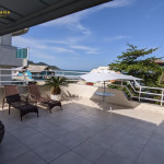 Ampla sacada com vista para o mar e avenida. Conta com uma máquina de lavar.