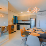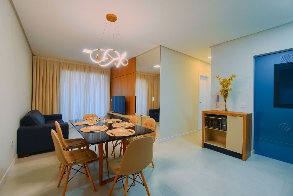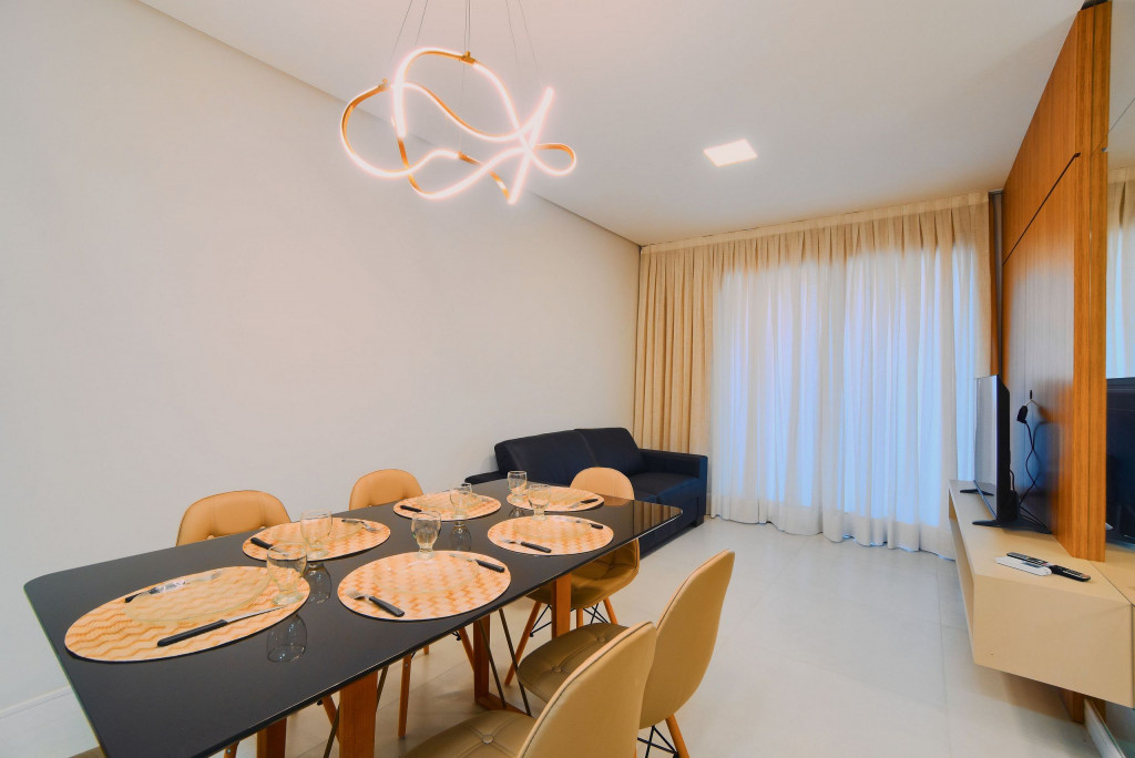 O apartamento 102 do Residencial Djalma acomoda até 05 pessoas (capacidade máxima incluindo crianças de qualquer idade) em 02 dormitórios, sendo uma suíte com cama de casal e quarto com 02 camas de solteiro mais uma cama extra. O imóvel possui cozinha completa e equipada (solicite inventário completo para nossa equipe), sala de estar e jantar, banheiro social, sacada com churrasqueira e ar condicionado em todos os ambientes.Para comodidade de nossos hóspedes, também oferecemos:- Wi-Fi com excelente velocidade;