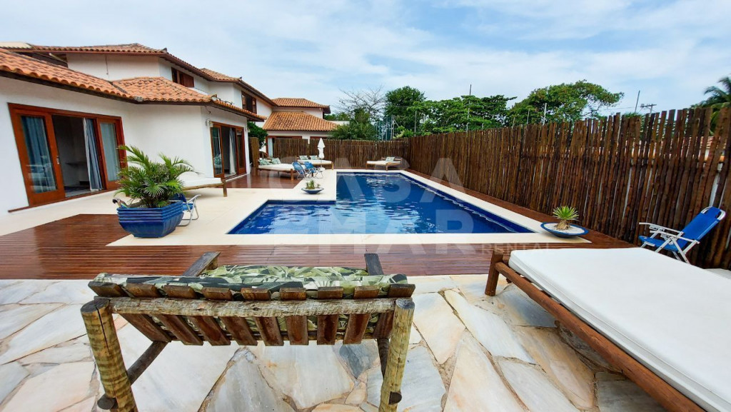 Três suítes no andar superior, sendo uma master, com banheira de hidromassagem. Quatros suítes ao redor da piscina e uma suíte canadense privativa.