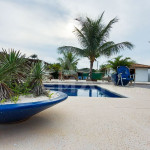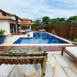 Uma área de lazer com piscina, churrasqueira, espreguiçadeiras, pranchas , barzinho e uma cozinha completa que da suporte aos dias ensolarados. Muito espaço e conforto para as crianças brincarem ao ar livre.