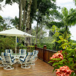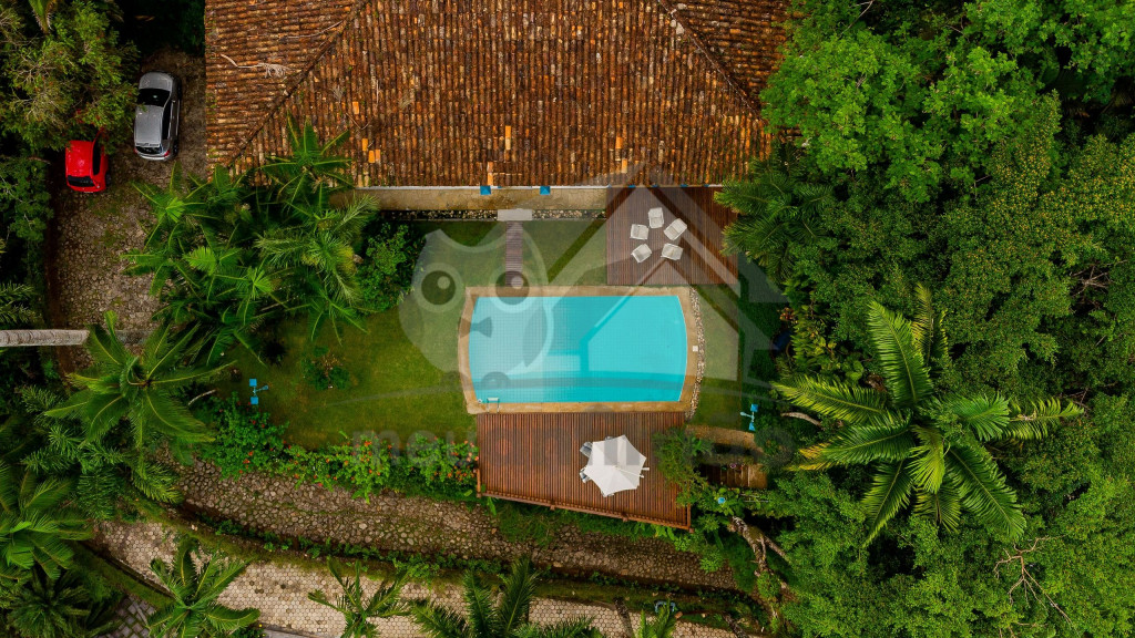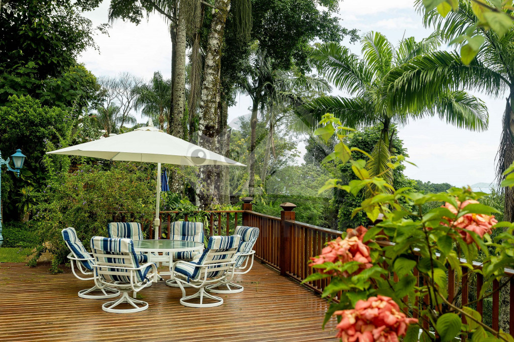 Na área externa, dispomos de uma piscina, um deck com espreguiçadeiras de frente para o mar, um extenso jardim, churrasqueira e fogão a lenha.