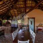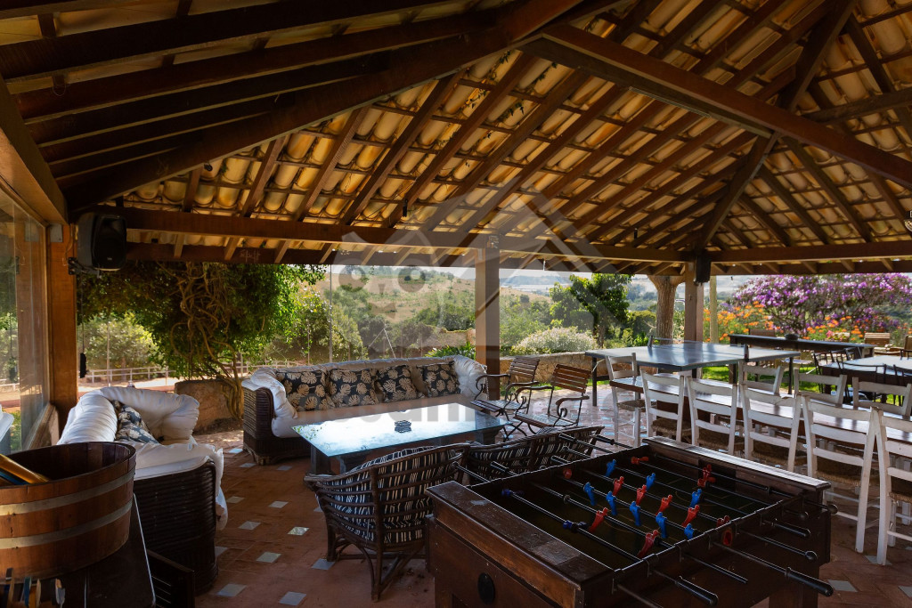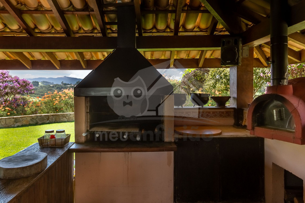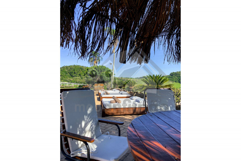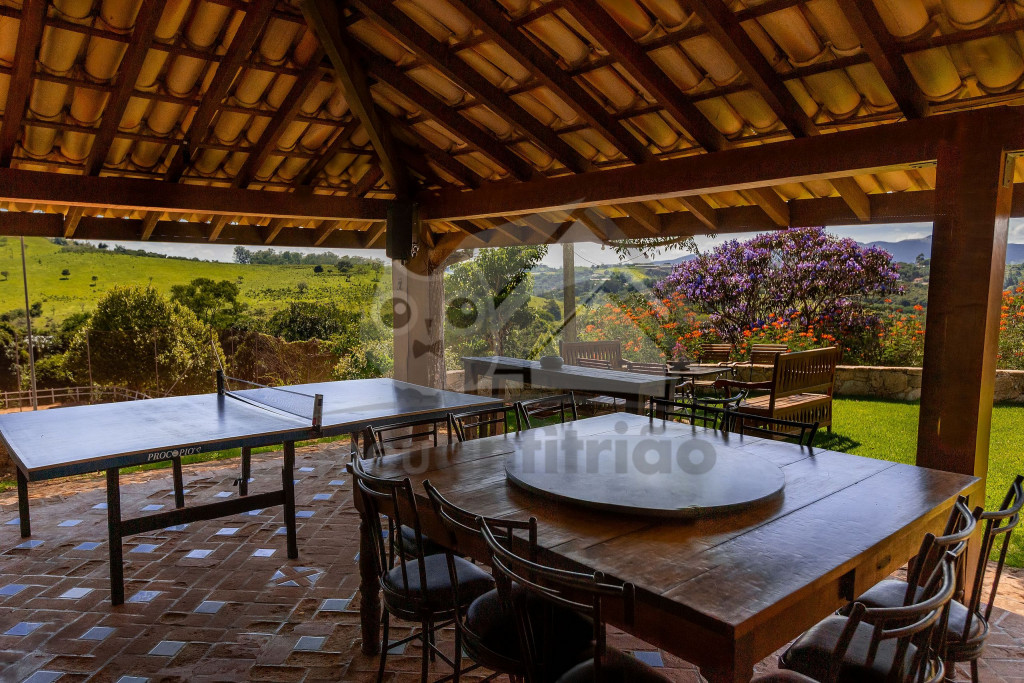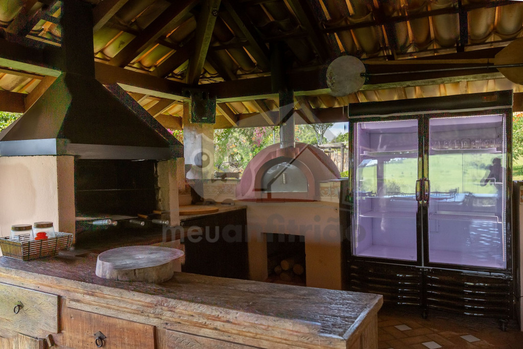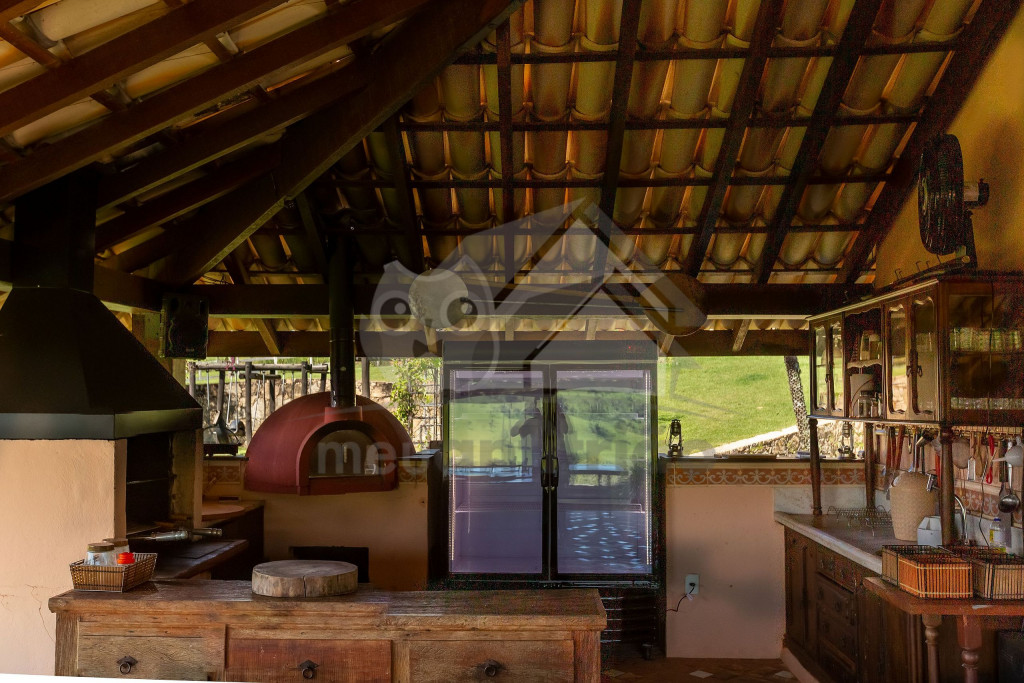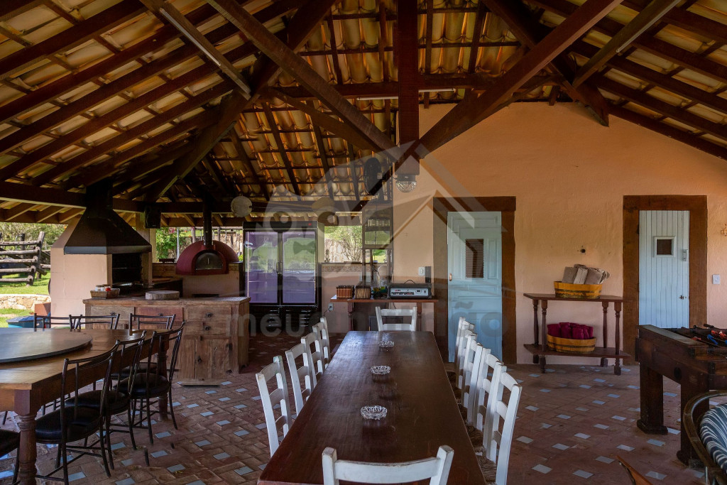 A cozinha, muito espaçosa, dispõe de 100m² e é totalmente preparada com utensílios de ponta, além de contar com um fogão industrial. Temos, ainda, uma mesa de bilhar, uma sala com projetor de última geração e um spa com jacuzzi para 12 pessoas. Vale lembrar que toda a água fornecida vem da montanha, de uma fonte de dentro da fazenda.