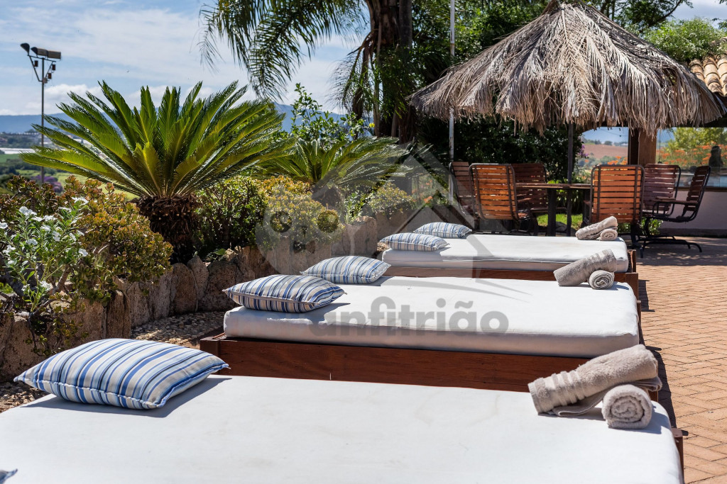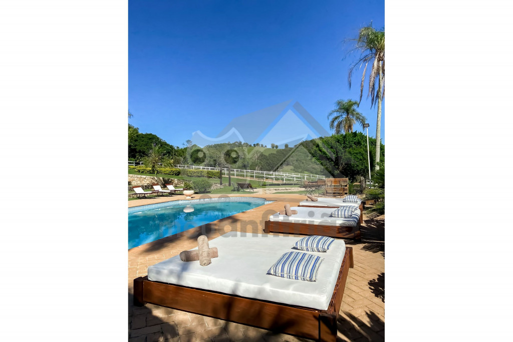 Na área externa, temos uma piscina enorme com diversas espreguiçadeiras e camas para tomar sol, além de um parquinho para os pequenos. A quem interessar, disponibilizamos serviço de concierge, para agregar ainda mais à experiência com diversos serviços e atividades, como pizzaiolo, churrasqueiro, barman, professor de tênis e professor de Equitação e muitos outros.