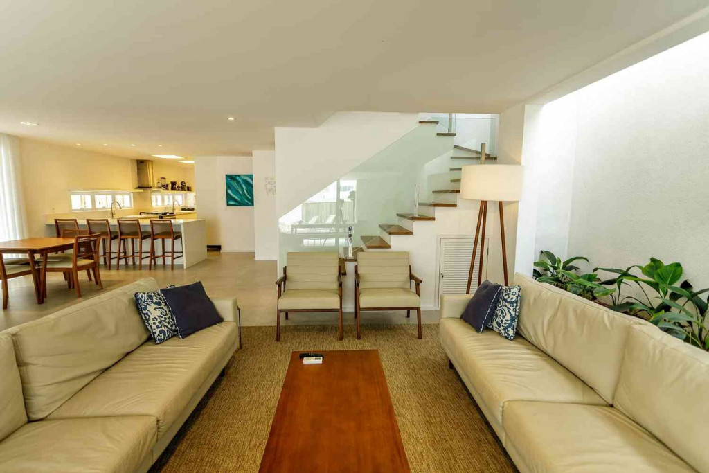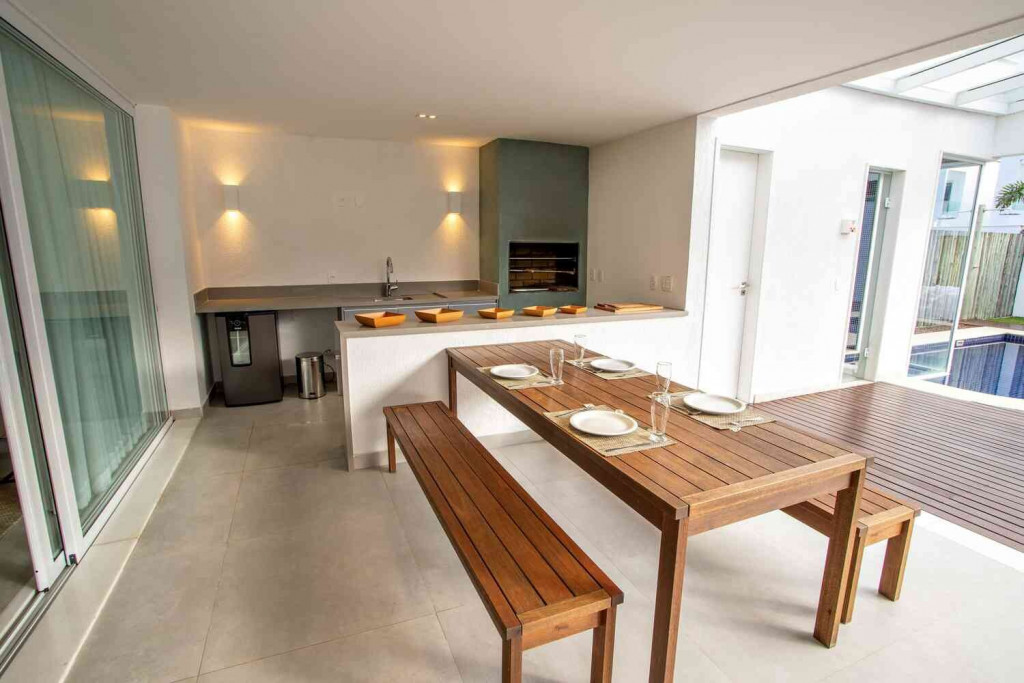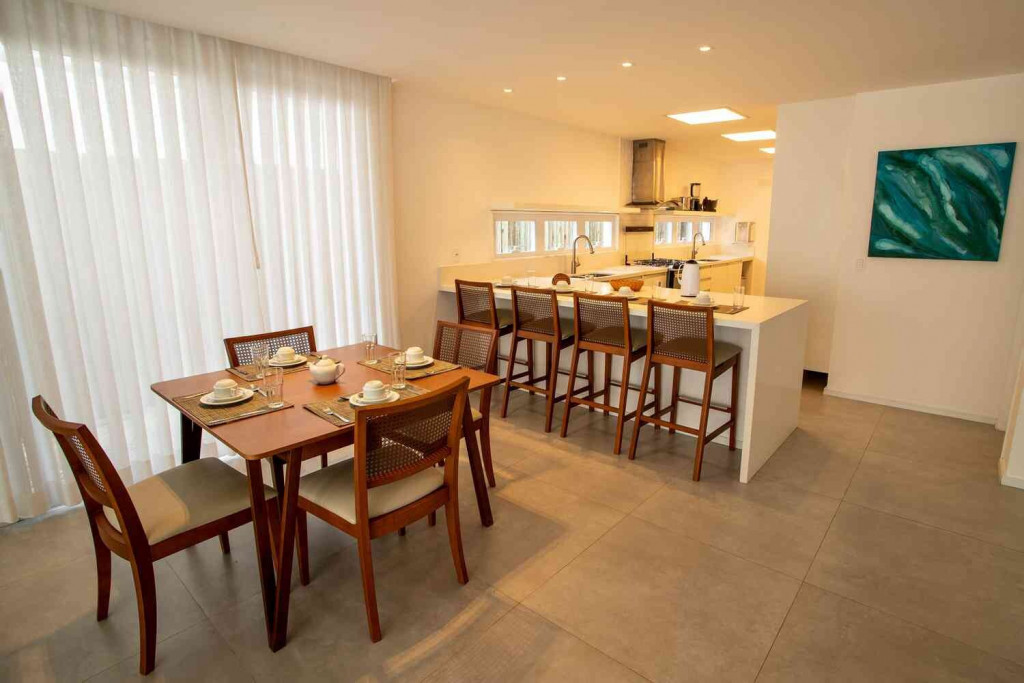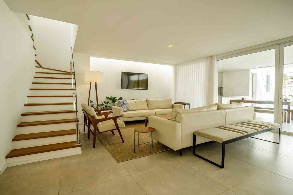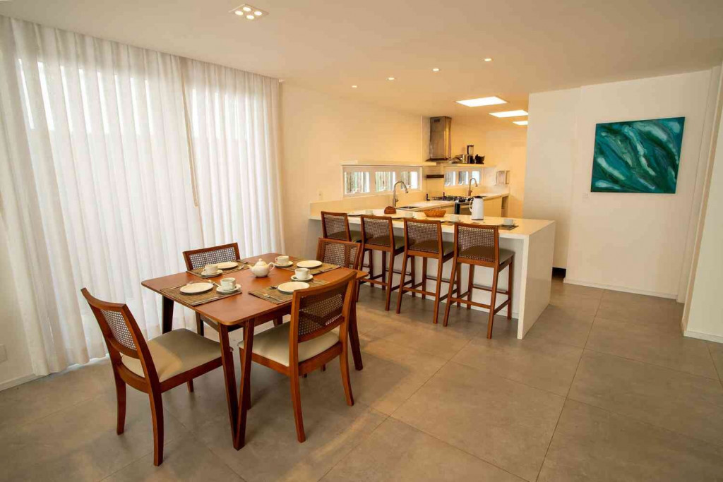 Aqui, cada detalhe da casa foi idealizado para proporcionar uma inesquecível experiência de conforto e beleza, num clima cuidadosamente despojado, que une a atmosfera praiana com o máximo do bom gosto, em seus ambientes que promovem o bem-estar e a integração entre os hóspedes.
