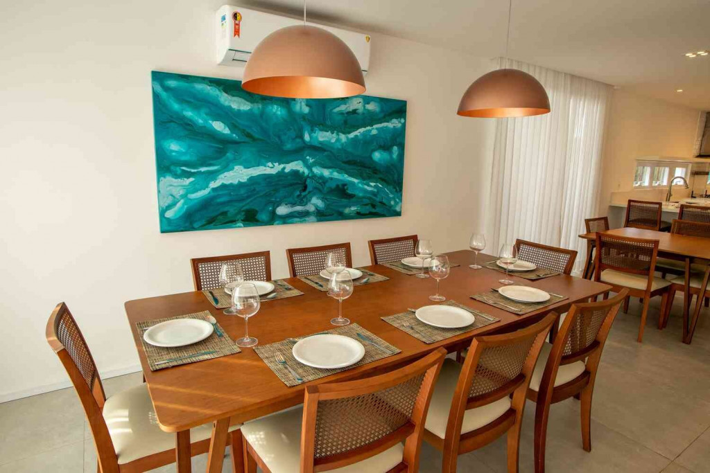 Suas 5 suítes são espaçosas, cada um com seu banheiro privativo, e contam com todo o conforto que você procura para férias incríveis com sua família e amigos. A casa acomodamuito bem até 10 convidados.