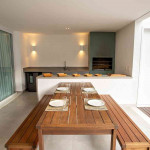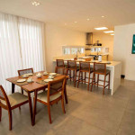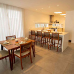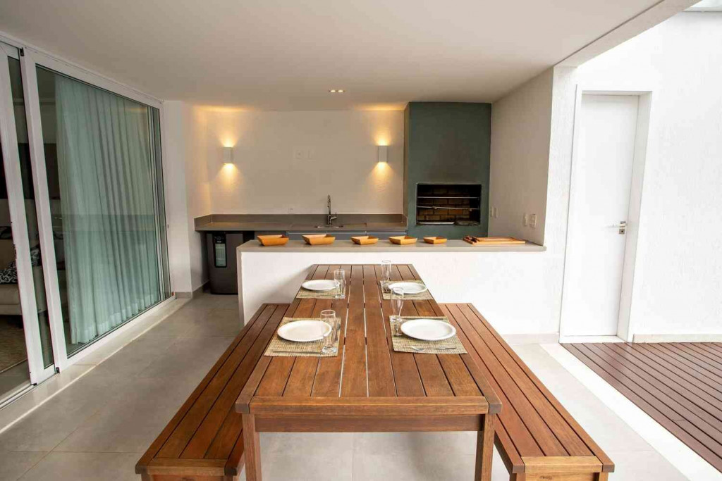 O amplo living room é integrado com a sala de jantar e uma cozinha completa, que se abrem para uma deliciosa varanda com espaço gourmet que inclui churrasqueira e piscina privativa.