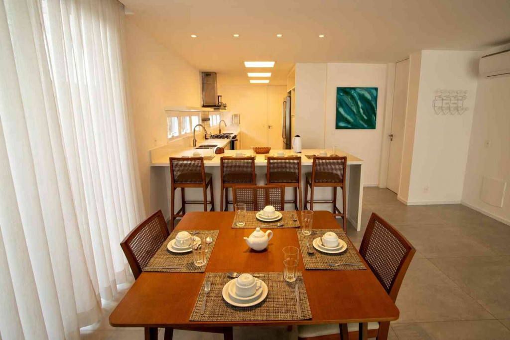 Além de enxoval de cama, mesa e banho completos, as amenidades incluem internet wifi de alta velocidade, estacionamento e uma marina privativa (o locatário tem direito ao embarque e desembarque; é proibida a atracação e permanência da embarcação por mais de 30 minutos. )