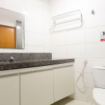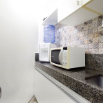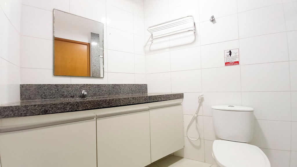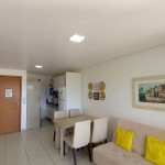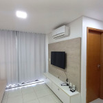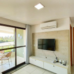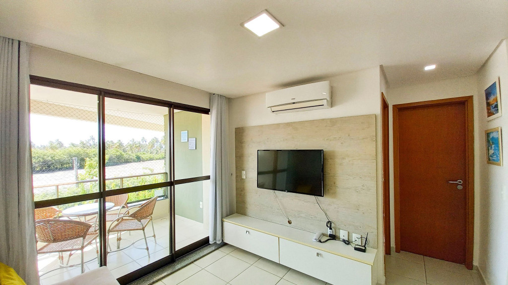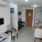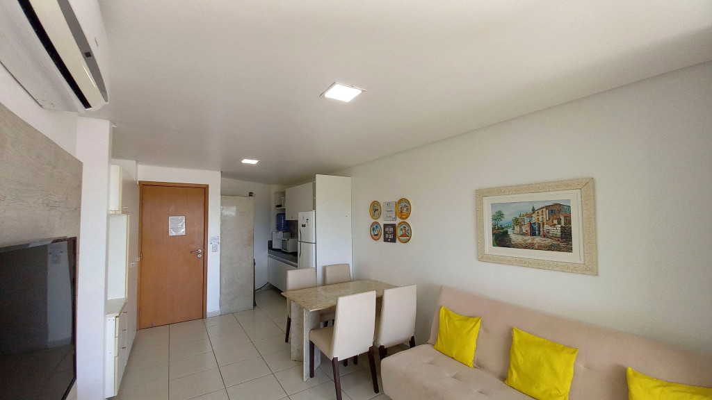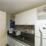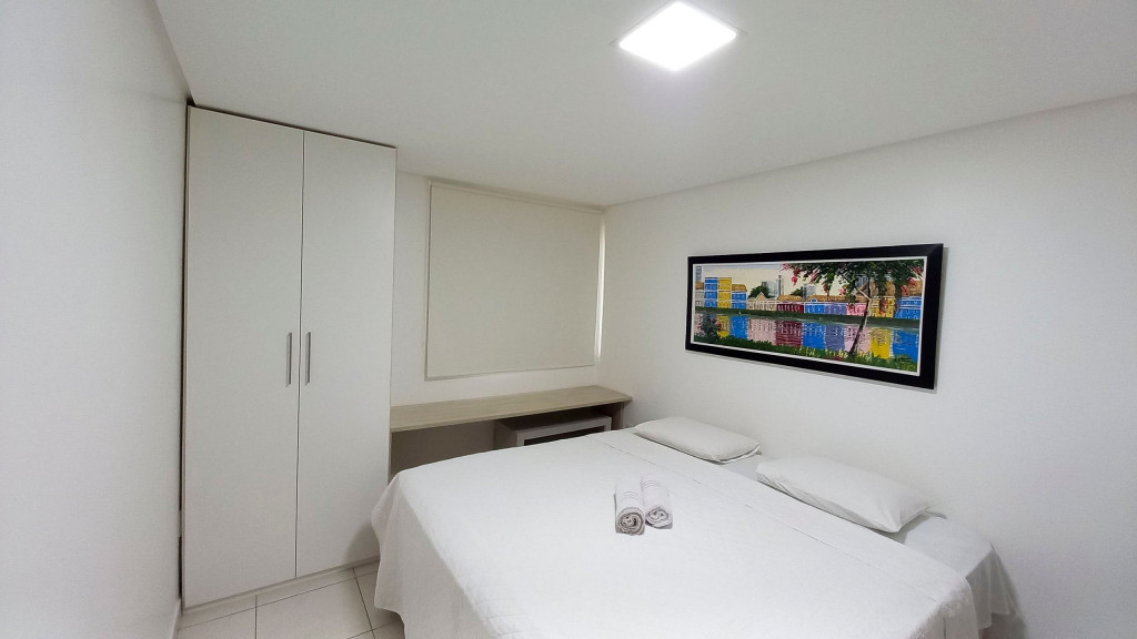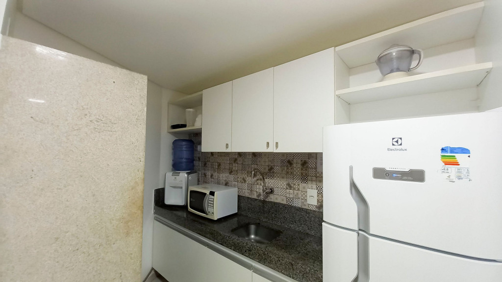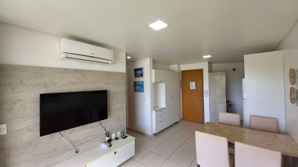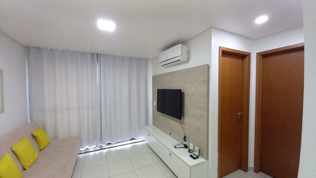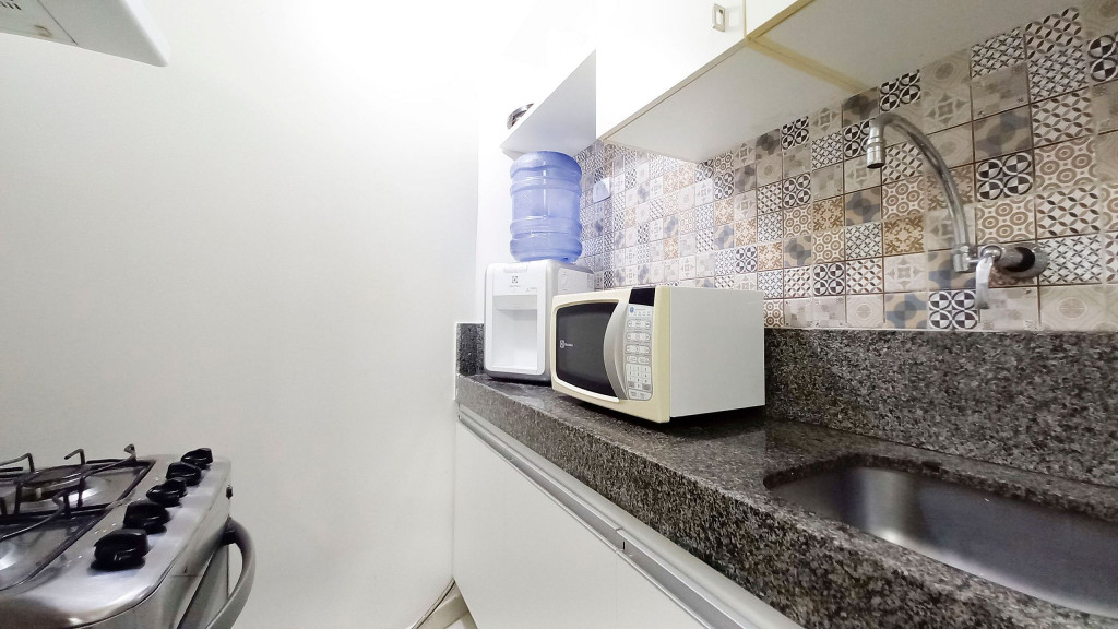 Na sala de estar você encontrará uma decoração agradável, TV, sofá cama de casal e ar condicionado. A cozinha é completa e possui ítens como louça, copos, panelas, talheres, sanduicheira, micro-ondas, fogão 04 bocas, geladeira e diversos utensílios. Além disso, temos uma mesa de mármore com quatro cadeiras. O flat possui 01 banheiro completo (box, armário, ducha higiênica, chuveiro elétrico).