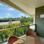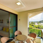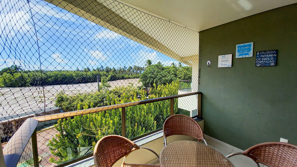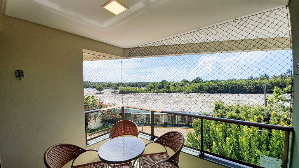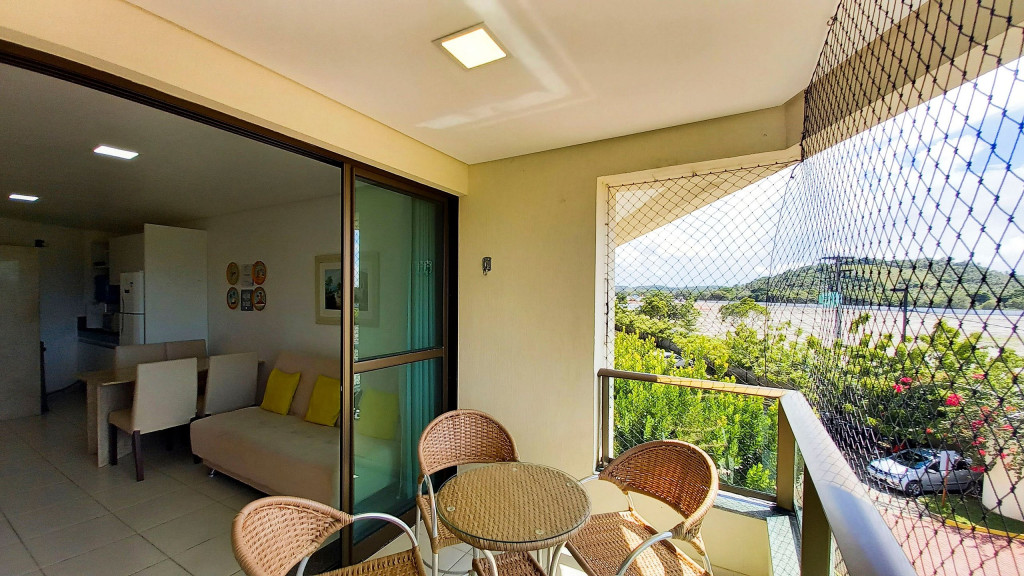 O flat se encontra no segundo andar do prédio com vista para o estacionamento e possui uma linda varanda com quatro cadeiras e mesa