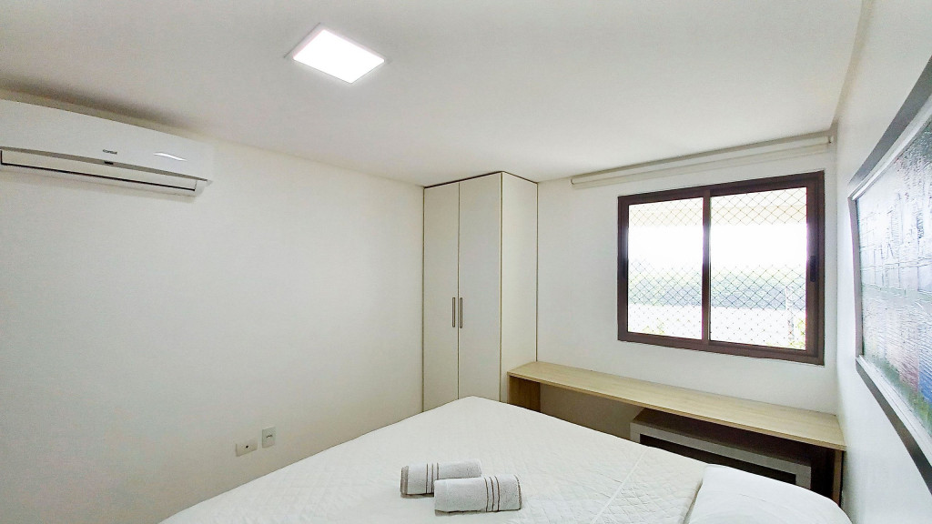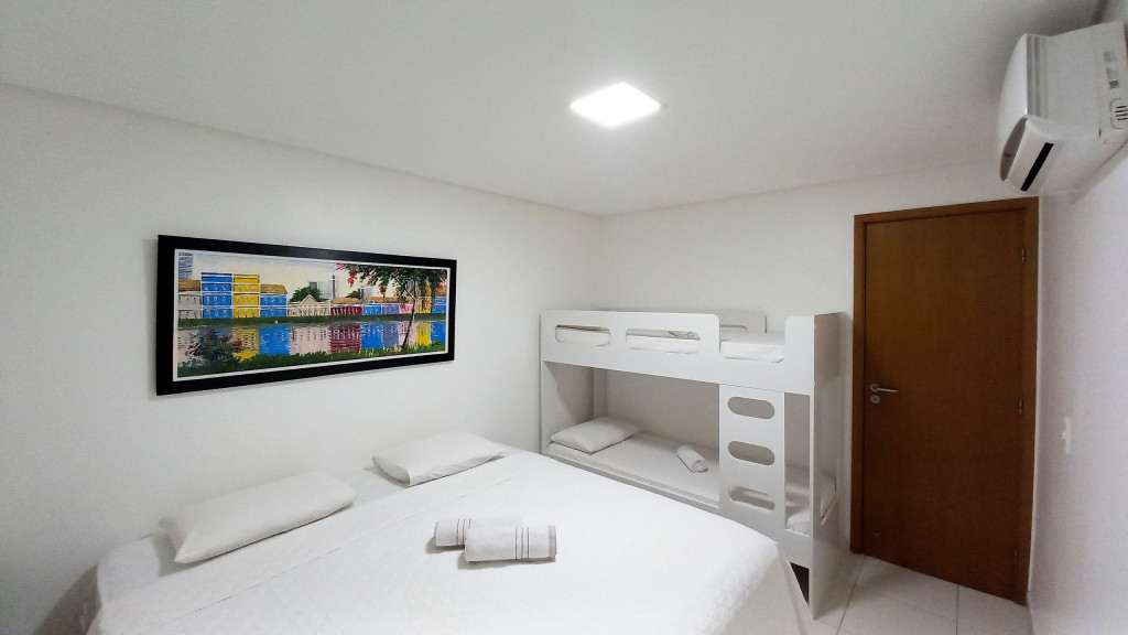 - Quarto 01: 1 cama box queen de casal + 01 beliche (acomoda até 04 pessoas), armários e ar condicionado.