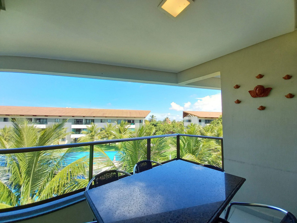 O flat se encontra no segundo andar do prédio com vista para piscina, possui também uma linda varanda com quatro cadeiras e mesa