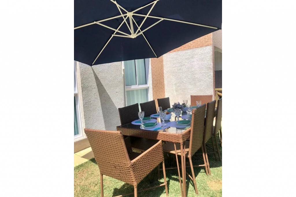 Apartamento 2 quartos, garden, com móveis de jardim completos, área privada para churrasco. Possui TV, wi-fi e estacionamento gratuito para até 2 carros. Totalmente equipado para garantir conforto e comodidade para toda familia.
