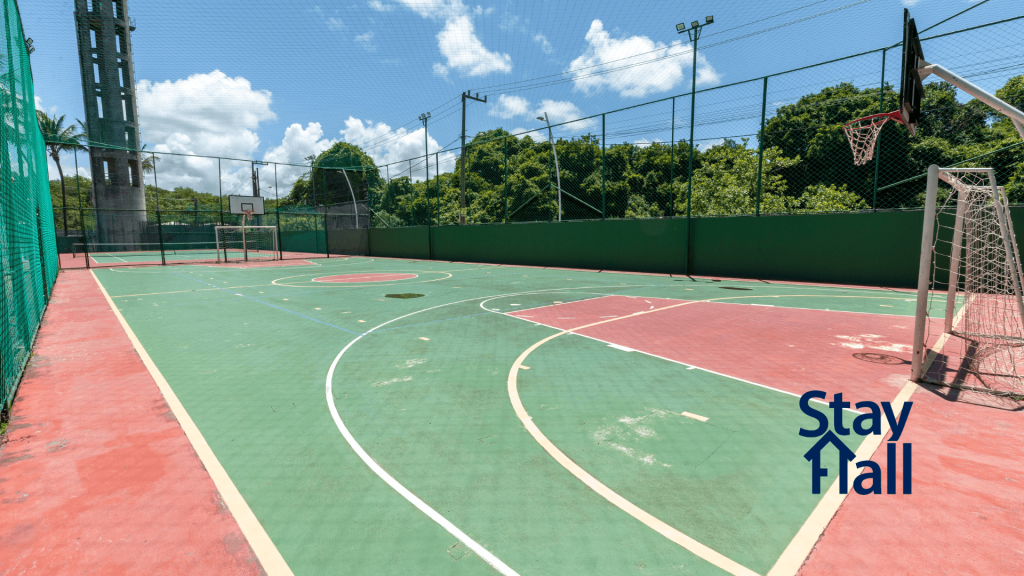 - Quadras poliesportivas (tênis, futebol, vôlei)
