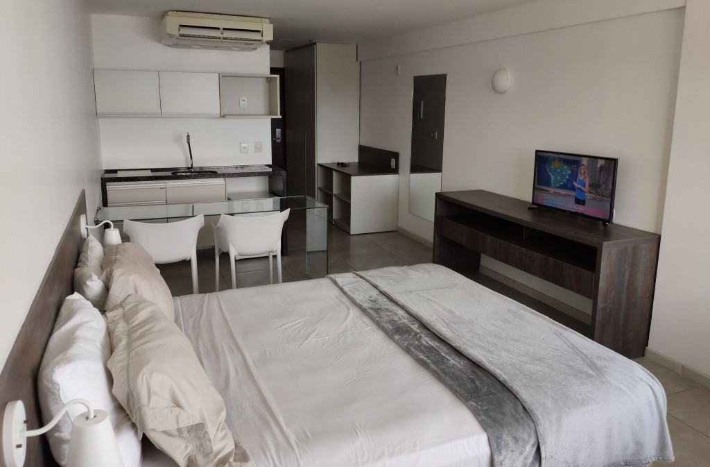 Dispõe de TV a cabo, Wi-Fi, Ar Condicionado Split e Cozinha compacta para preparo de refeições rápidas .1 Cama Queen1 sofa-cama (para 1 adulto ou 2 criancas)