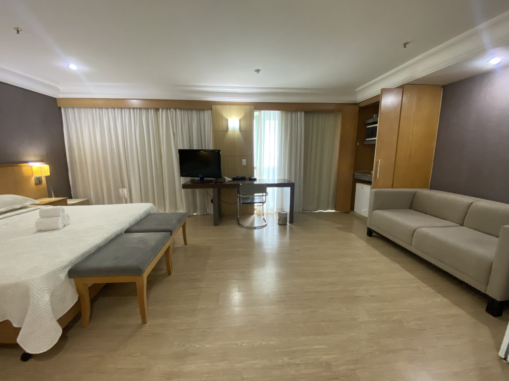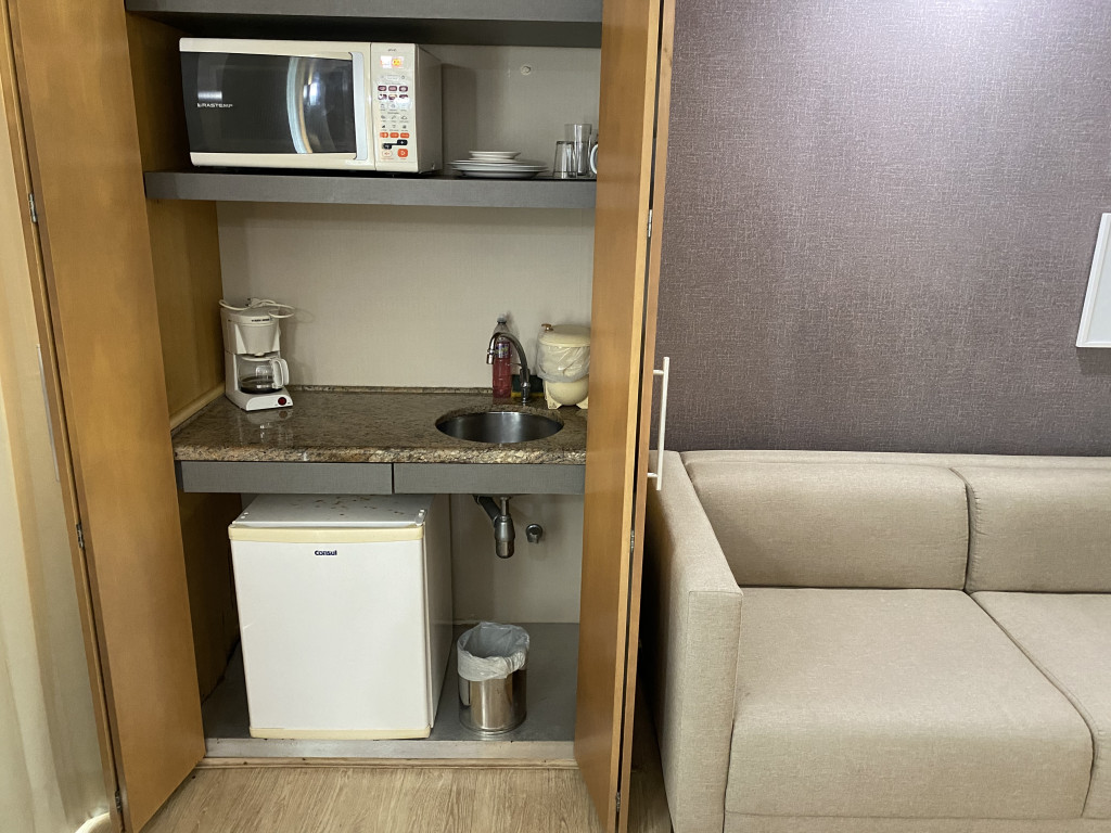 Prédio possui restaurante funcionando as 8:00 as 23:00. Tem lavanderia automatizada e mercadinho automatizado.