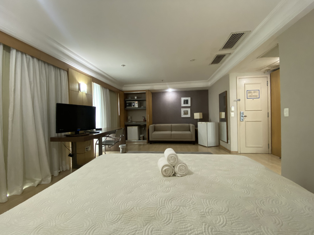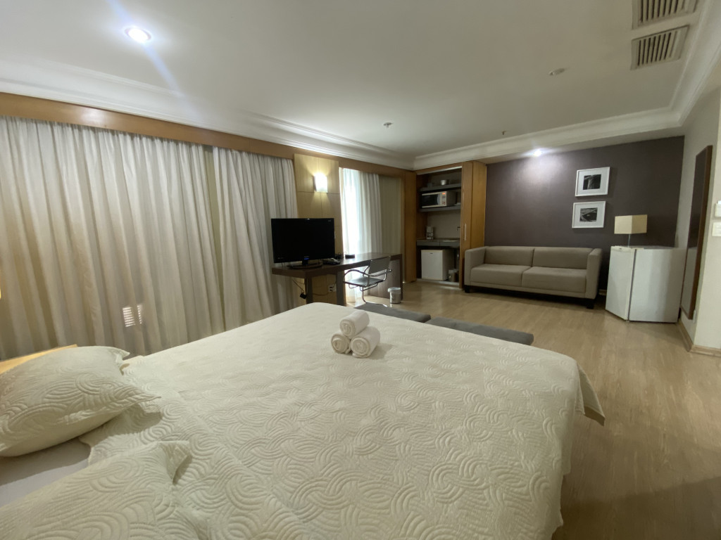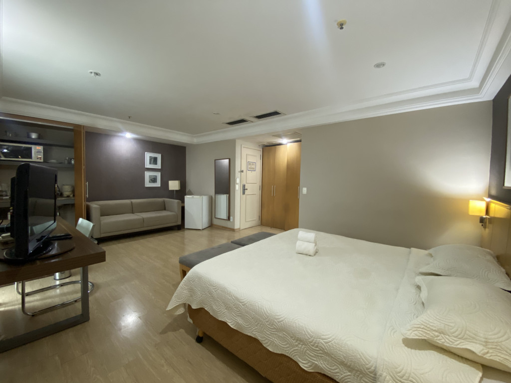 Flat com excelente localização, piscina, academia e há 8 mins a pé da praia.