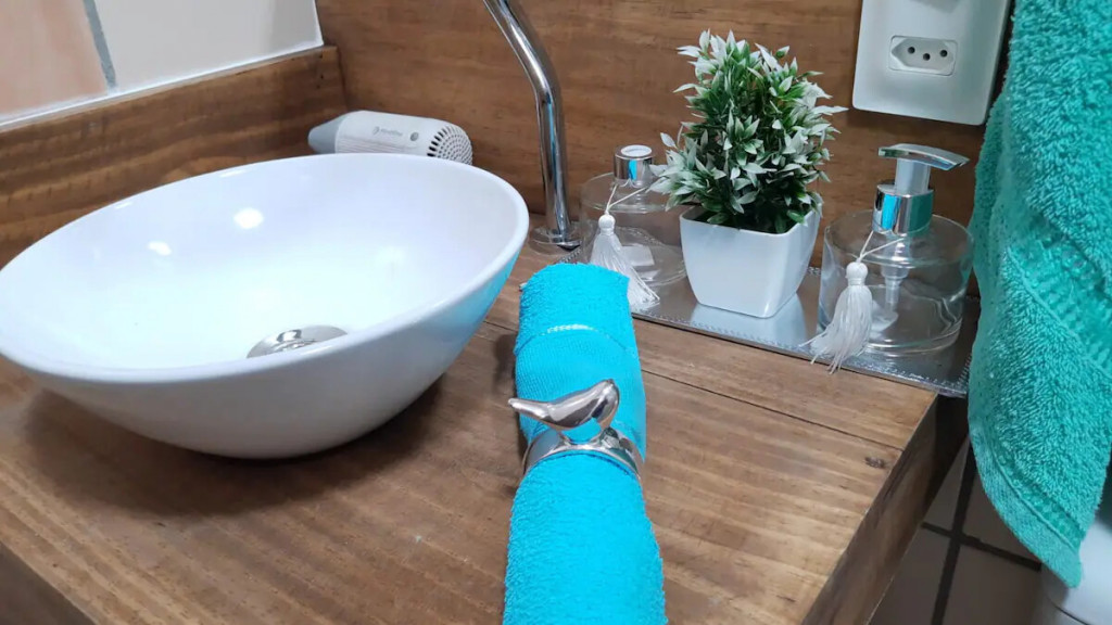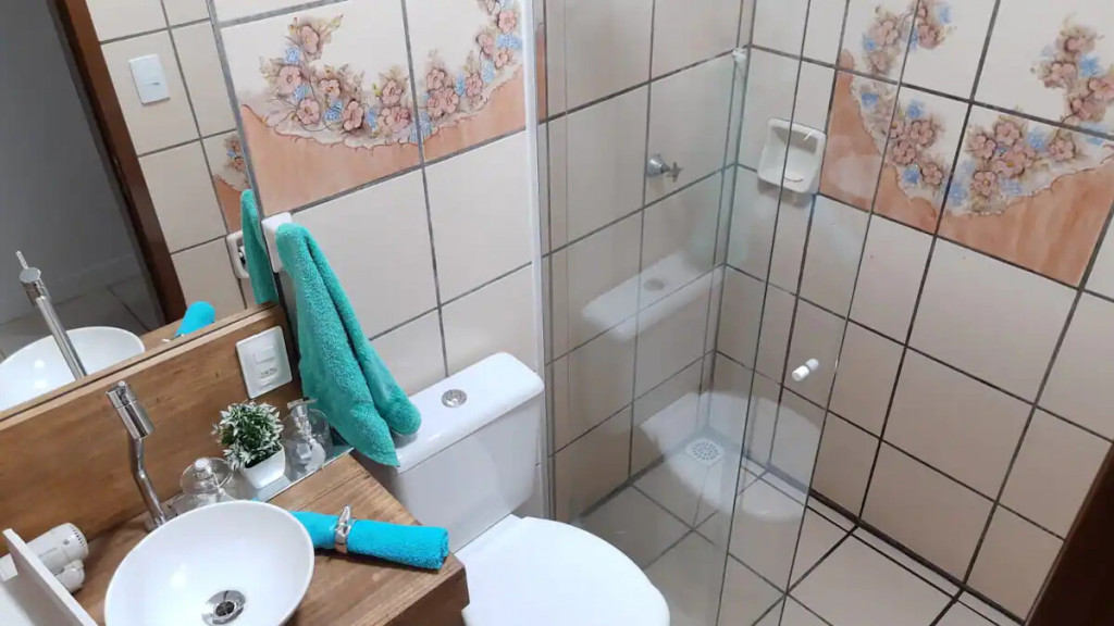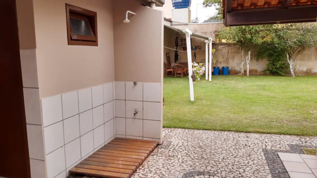 Dispomos de uma ducha para o seu pós-praia, mas atente-se, banho relaxante mesmo só na sua acomodação.