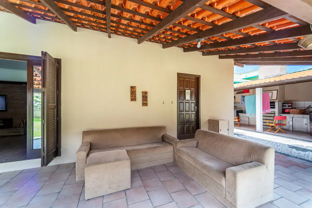 Sofás e cadeiras no varanda para um momento de relax e ainda curtindo o cantos dos pássaros em perfeita conexão com a natureza;