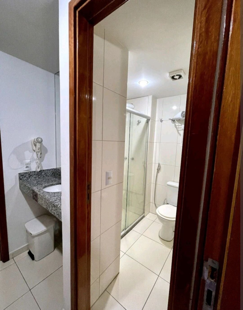 O Prédio possui estacionamento próprio que pode ser acessado pela rua de trás, após concluído o cadastro biométrico do hóspede.