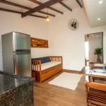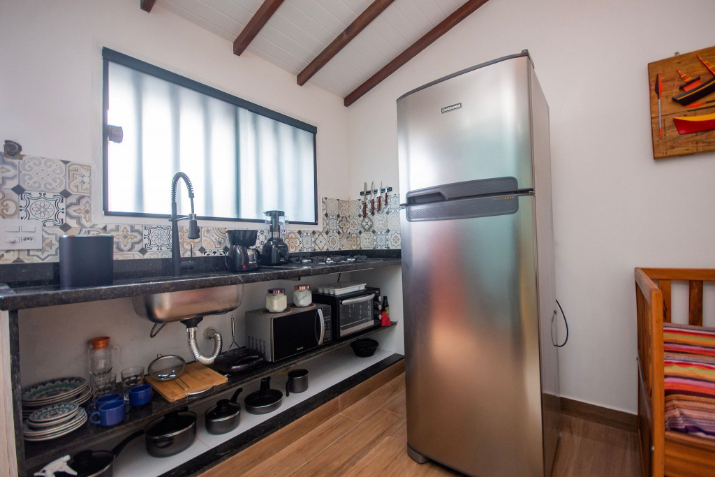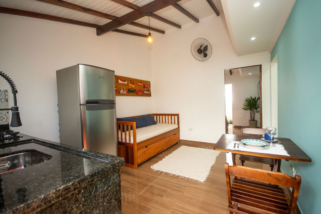 Apartamento novo com um quarto com ar condicionado no primeiro térreo, banheiro e sala e cozinha. Temos uma cama de casal no quarto e um sofá cama na sala. Tudo novinho: móveis e utensílio. Muito bem localizado na quarta quadra da praia do Jabaquara, 10 minutos caminhando até o Centro Histórico. Várias opções de restaurantes no bairro. Mercado e padaria próximos.