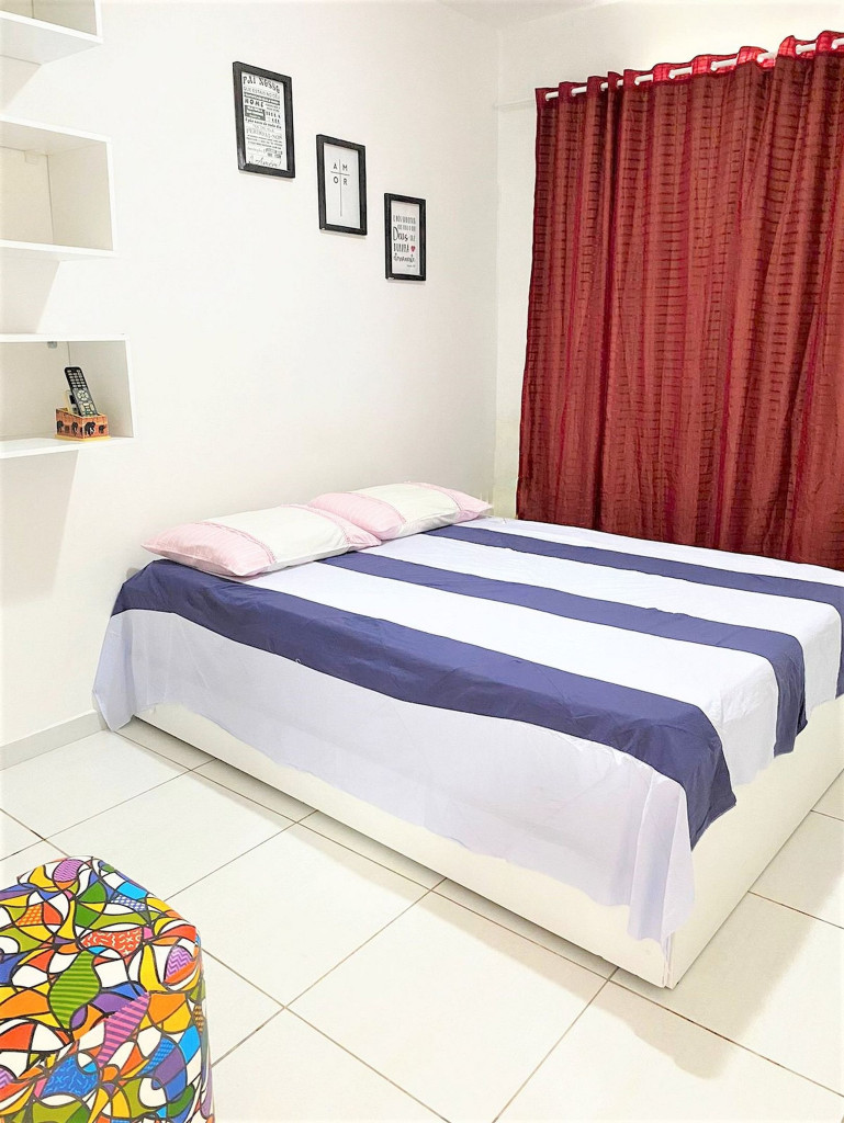 -Enxoval gratuito: toalha de banho, toalha de rosto, tapete banheiro, roupas de cama, lençol e travesseiro.