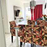 Flat Garden de 1 quarto com Terraço. Sala de estar e jantar, cozinha, 1 banheiro social que também pode ser utilizado como suíte. O apartamento tem 35 m². No quarto tem ar-condicionado, bicama de casal (duas camas integradas), um armário suspenso. Na sala tem um sofá-cama, televisão (com canais fechados), rack, entre outros. Na cozinha tem fogão, geladeira, armários, liquidificador, sanduicheira, utensílios básicos. Wi-Fi grátis.