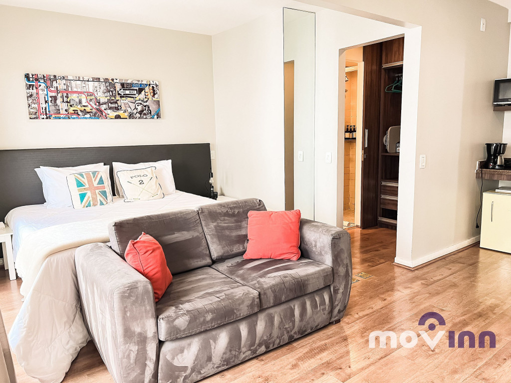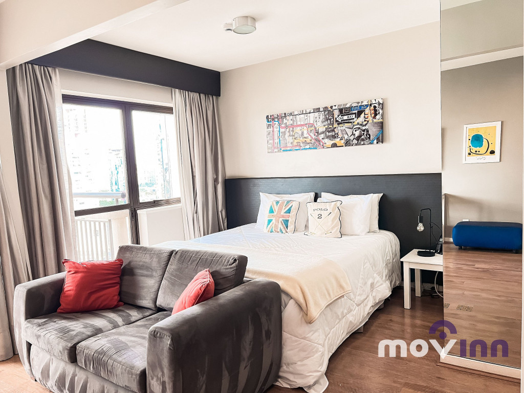 O empreendimentos é um flat, não concebidos pela MOVINN, por isso o padrão de atendimento in loco não segue nossos padrões. O Flat conta com serviços 24 horas de recepção, segurança, uma vaga de garagem inclusa com serviço de manobrista e carregador para carro elétrico no 1° subsolo (nós contate para mais informações). A piscina localizada no último andar proporciona uma linda vista da cidade de São Paulo. Para os adeptos da vida saudável, o empreendimento oferece academia de ginástica com equipamentos modernos.