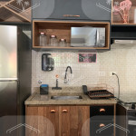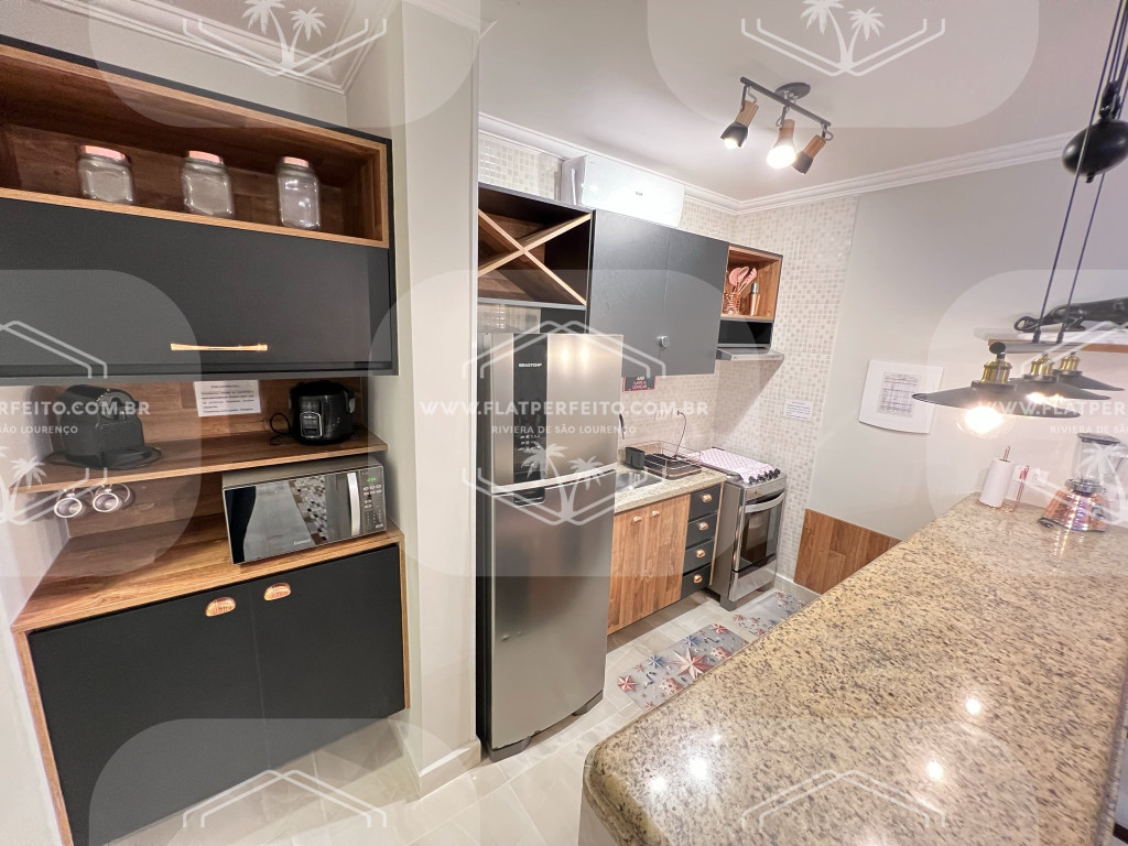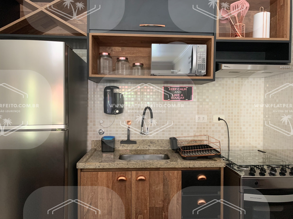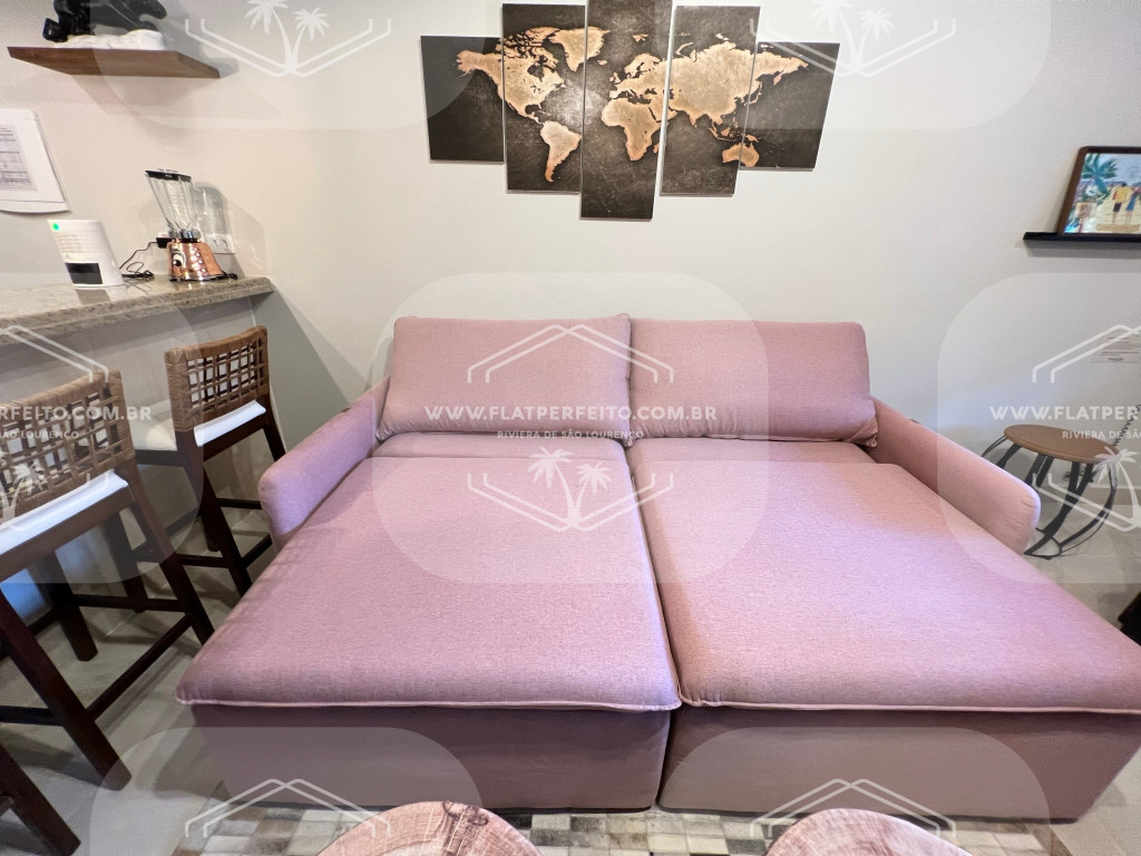 Flat com quarto, banheiro, sala e cozinha americana localizado no térreo, decorado, com todos utensílios necessários para seu conforto, além de enxoval, café da manhã servido no restaurante do Condomínio, trocas de toalhas diariamente.