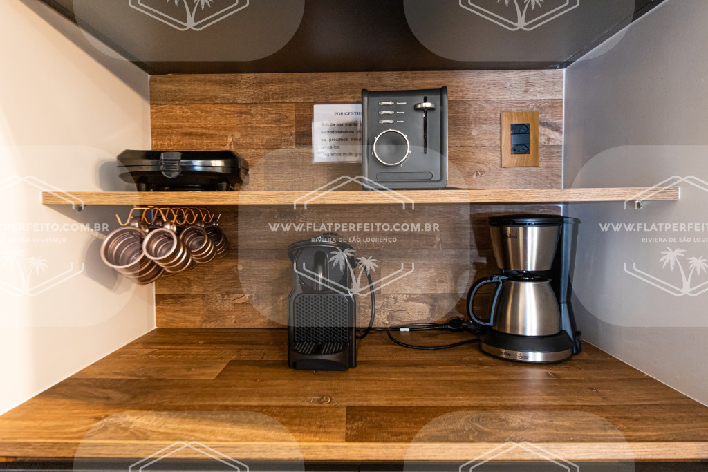 Cozinhas equipadas e completas com máquina de café Nespresso, cafeteira convencional (102), sanduicheira, torradeira, fritadeira elétrica sem óleo, liquidificador, panela de arroz elétrica, microondas, geladeira, fogão convencional, adega climatizada e no banheiro, secador de cabelos e amenidades.