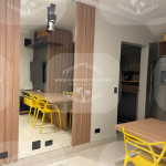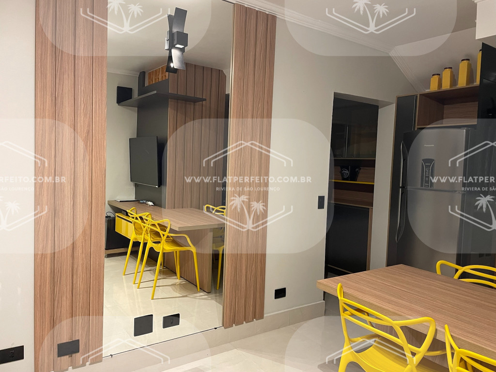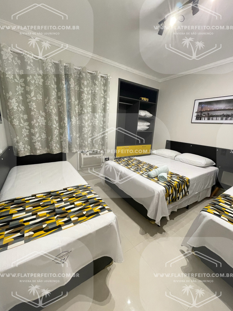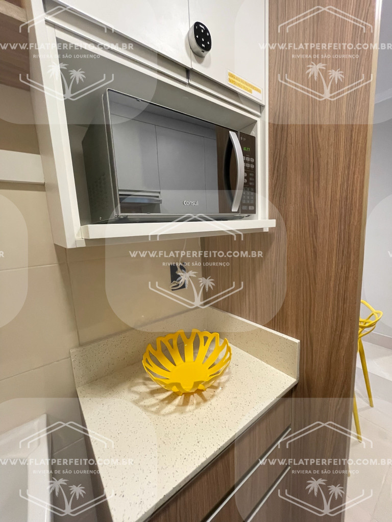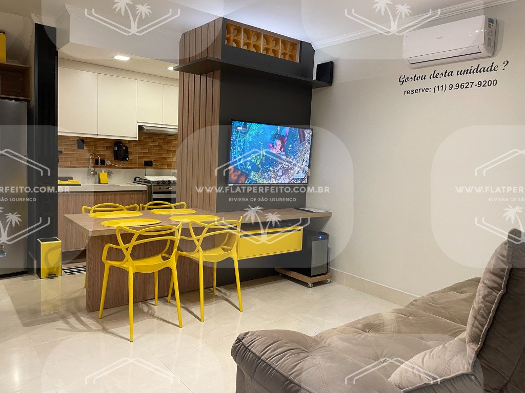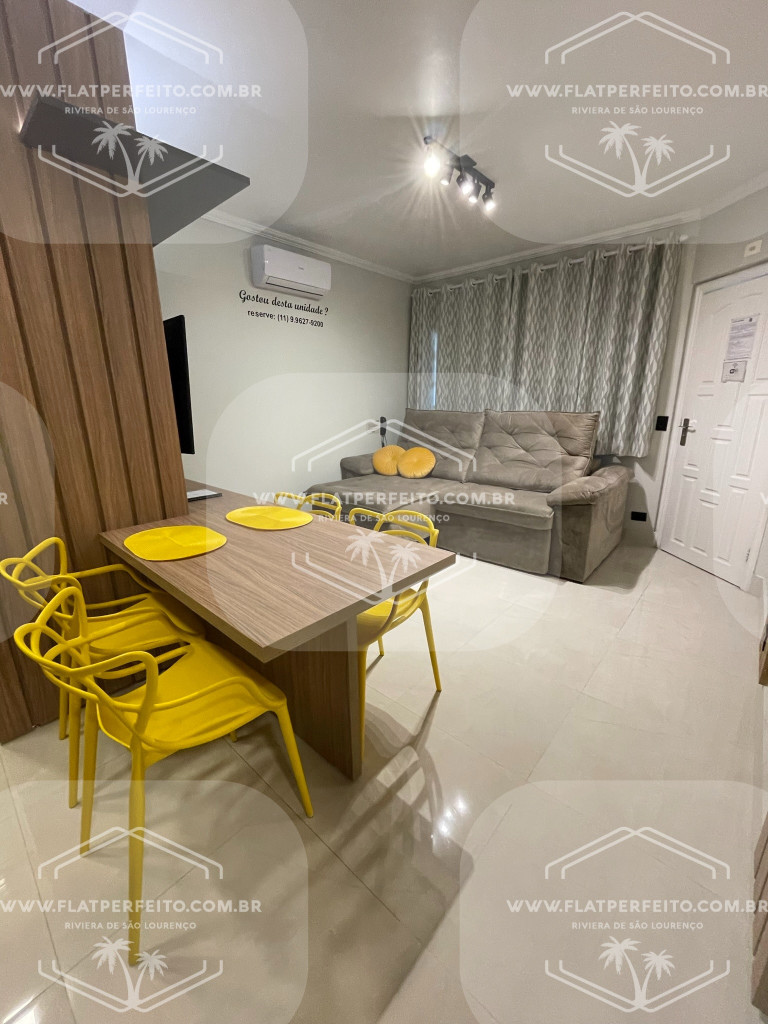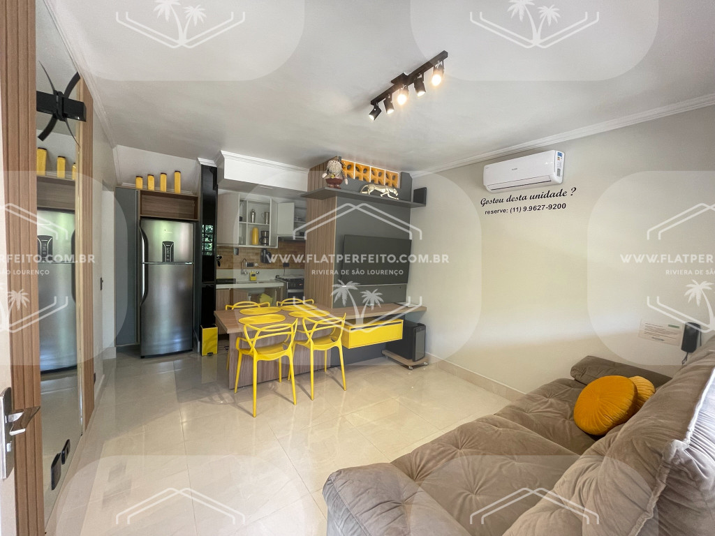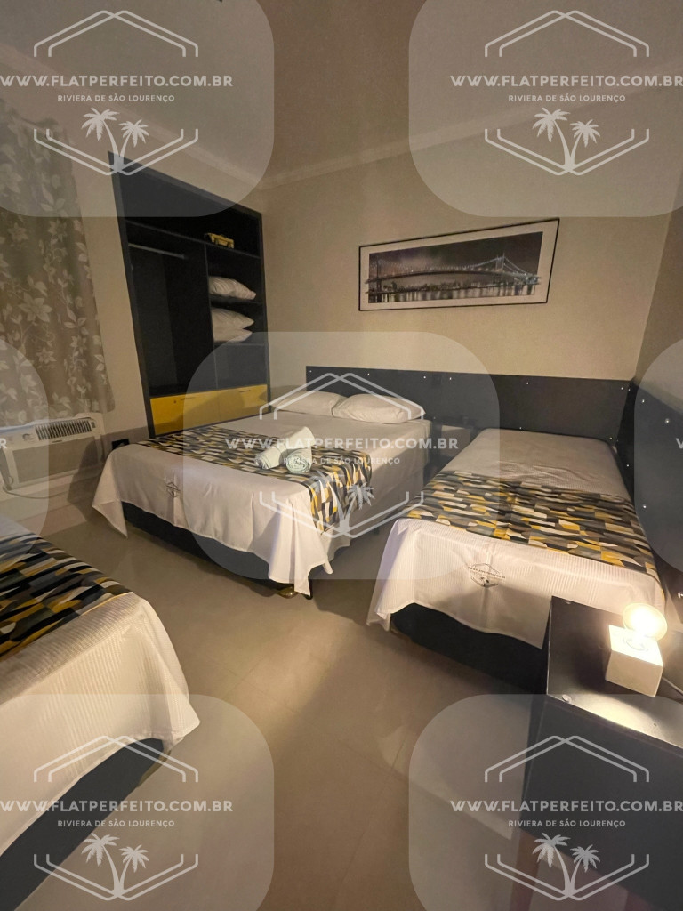 Flat com quarto, banheiro, sala e cozinha americana localizado no 1o. andar, decorado, com todos utensílios necessários para seu conforto, além de enxoval, café da manhã servido no restaurante do Condomínio, trocas de toalhas diariamente.