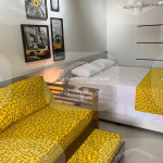 Suíte localizada no 2o. andar, decorado, com todos utensílios necessários para seu conforto, além de enxoval, café da manhã servido no restaurante do Condomínio, trocas de toalhas diariamente.
