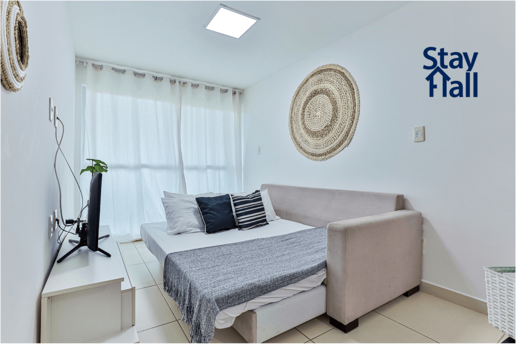 - Sala com 1 sofá cama de casal