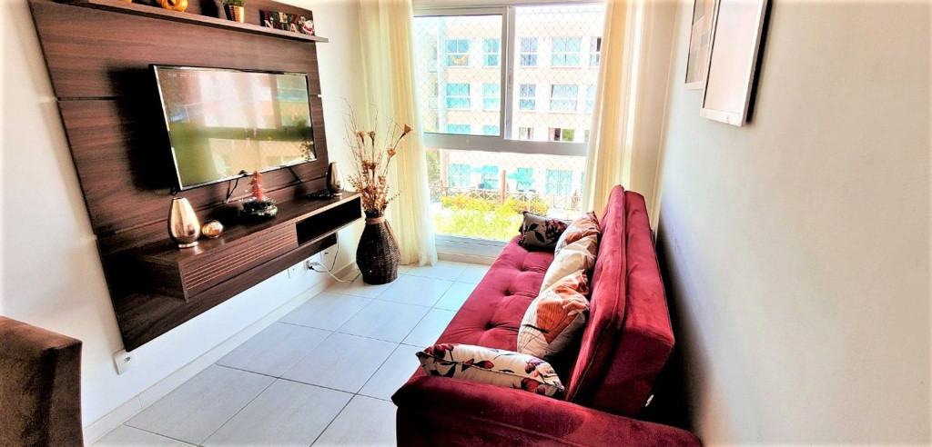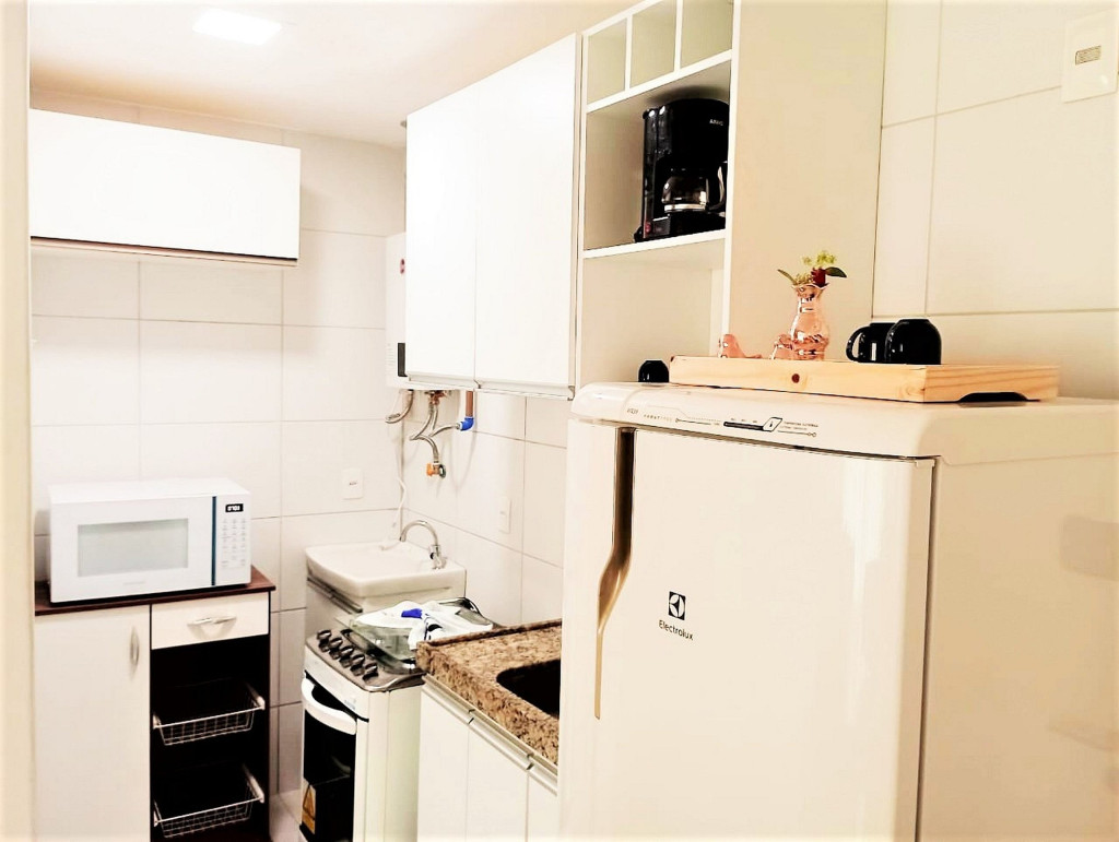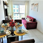 O flat possui 1 quarto, sala de estar e jantar, cozinha, 1 banheiro social que também pode ser utilizado como suíte. O apartamento tem 35 m² (suficiente para até 5 pessoas-regras do condomínio). No quarto tem ar-condicionado, cama de casal, colchão solteiro, armário suspenso. Na sala tem um sofá-cama, televisão Smart Tv, rack, mesa, ventilador, entre outros. Na cozinha tem fogão, forno, geladeira, utensílios domésticos e de cozinha, cafeteira, sanduicheira, armários, entre outros. Wi-Fi grátis.