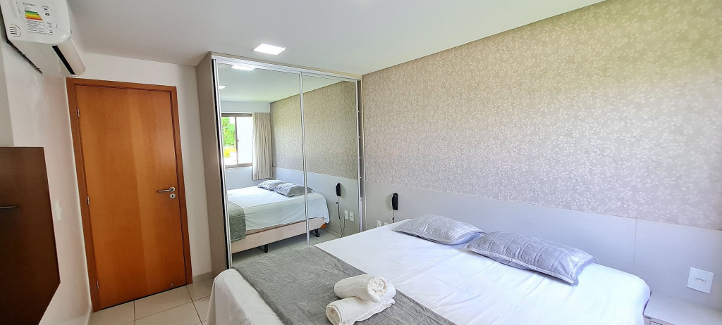 - Quarto 01: 1 cama box king de casal + 02 colchões de solteiro (acomoda até 04 pessoas), TV, mesa de cabeceira, armários e ar condicionado.