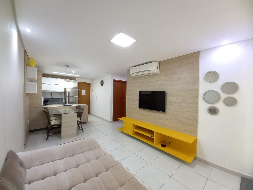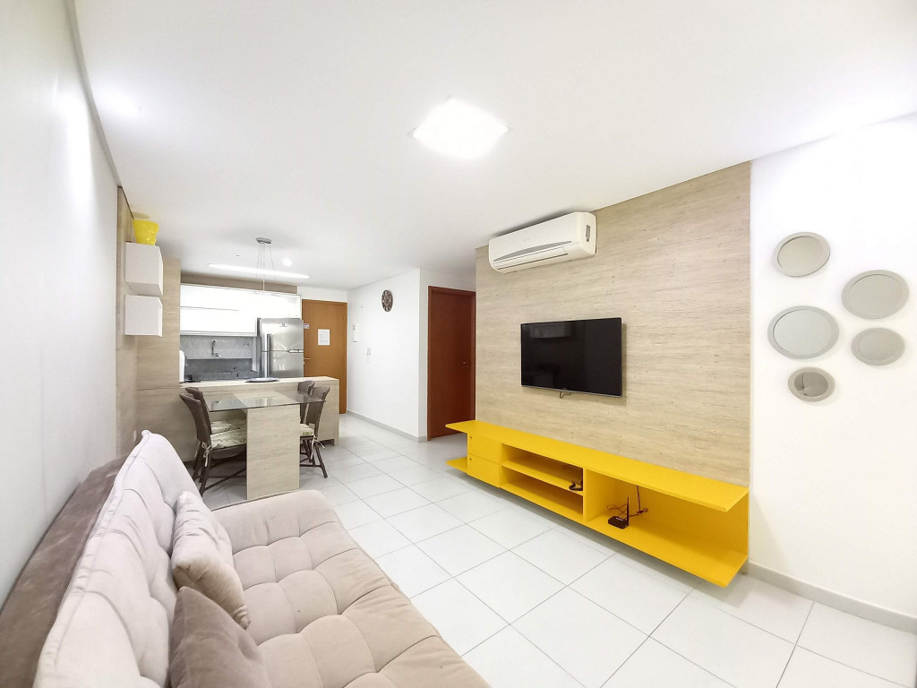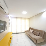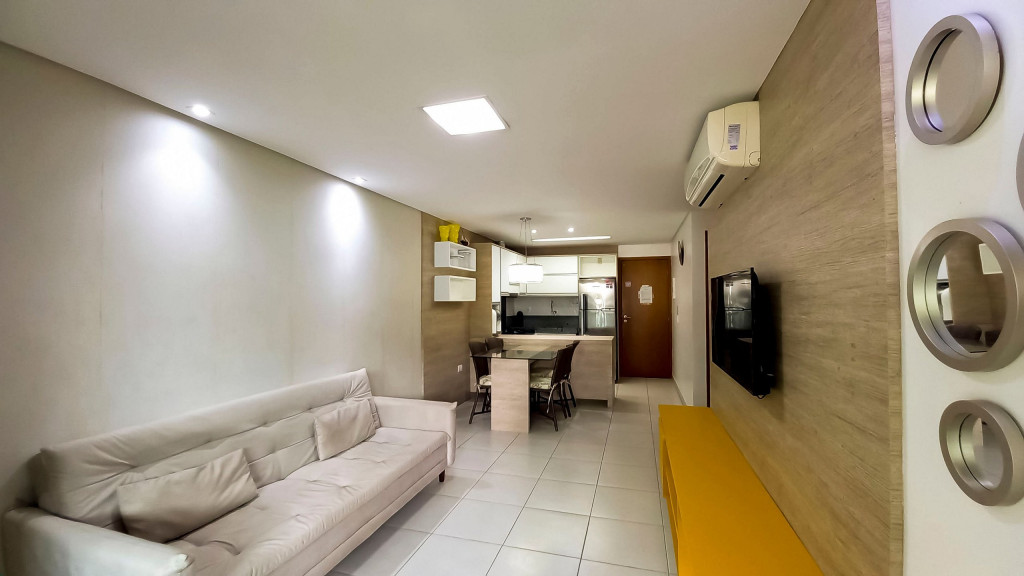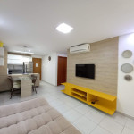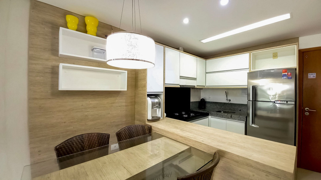Na sala de estar você encontrará TV, sofá, ar condicionado e uma decoração agradável. A cozinha é completa e possui diversas comodidades como louça, copos, panelas, talheres, geladeira, micro-ondas, sanduicheira, cafeteira, fogão 04 bocas, gelágua, liquidificador, dentre outros utensílios. A acomodação dispões também de sala de jantar com mesa e 4 cadeiras e 02 banheiros completos (box, armário, ducha higiênica, chuveiro elétrico).