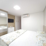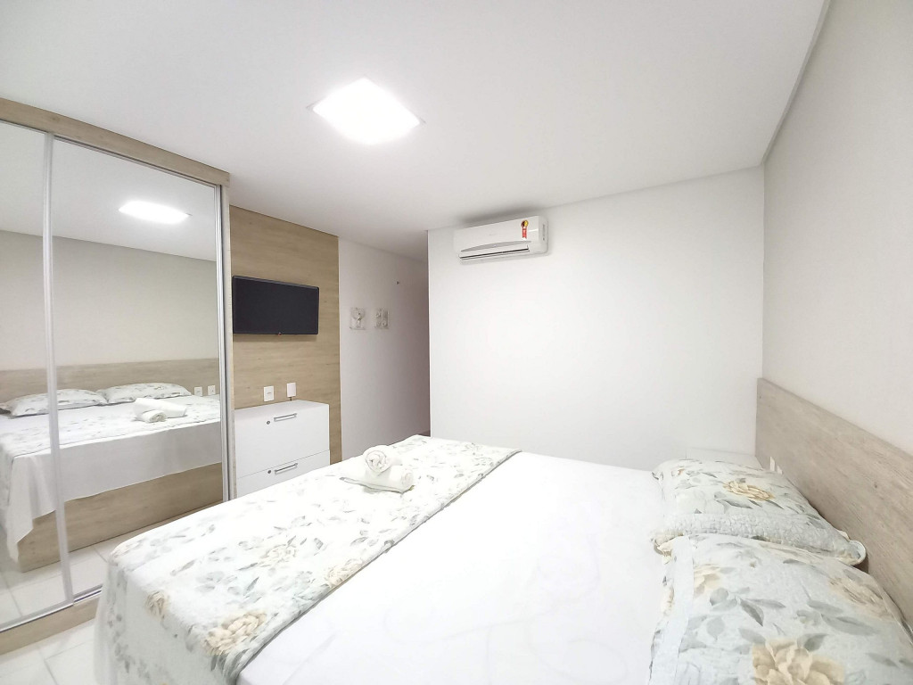- Suíte 01: cama box queen, 2 bicamas, armários, ar condicionado e TV;