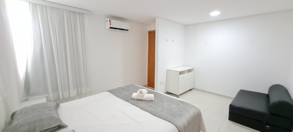 - Suíte 01: 1 Cama box queen + 1 poltrona , armários e ar condicionado;