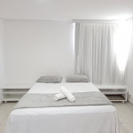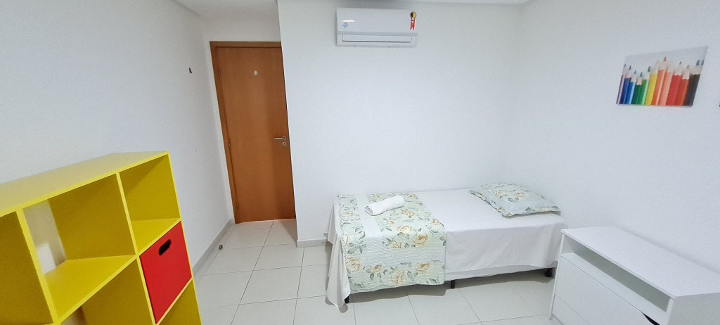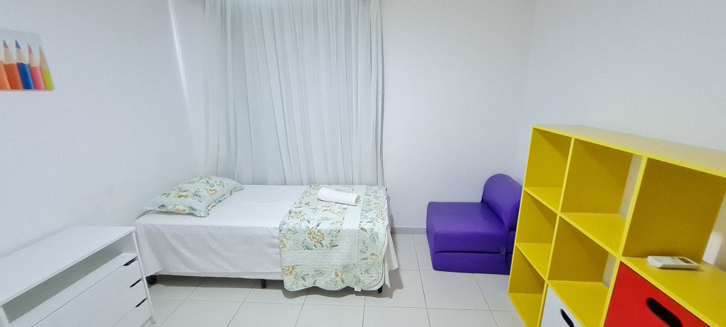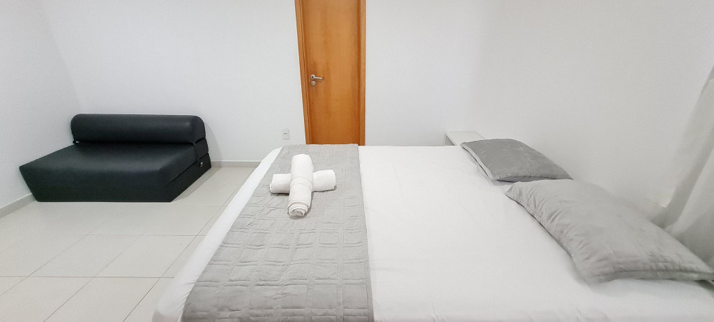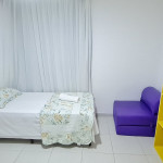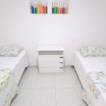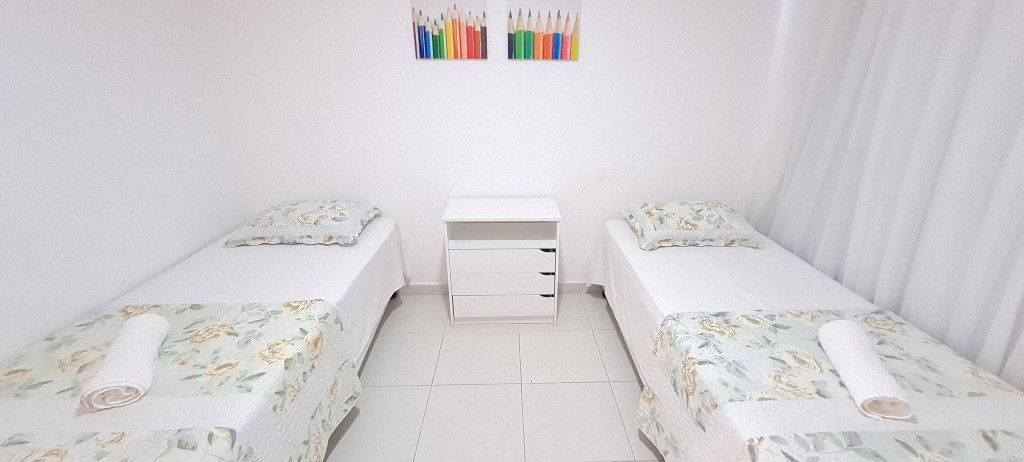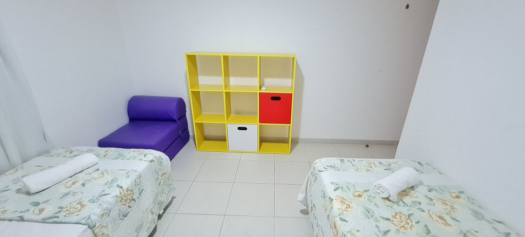 - Quarto 01: 2 camas de solteiro + 1 sofá-cama de solteiro, armários e ar condicionado.