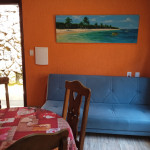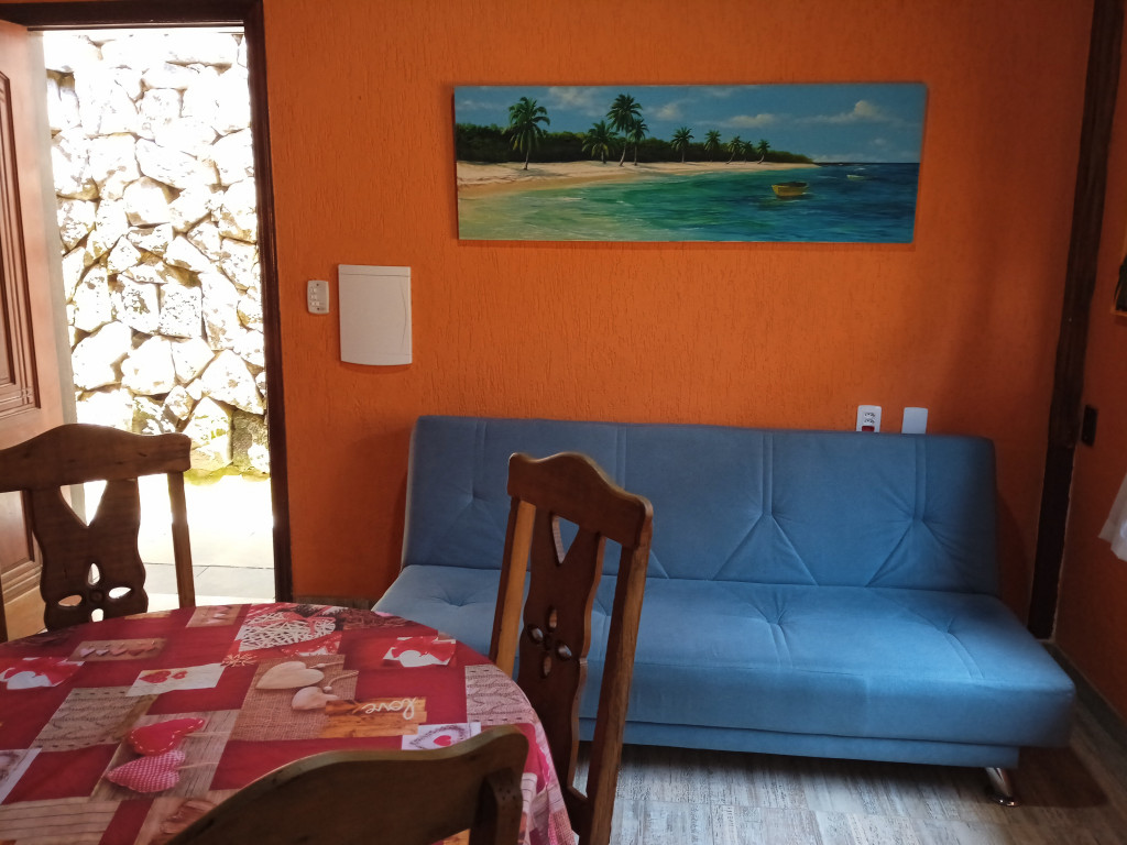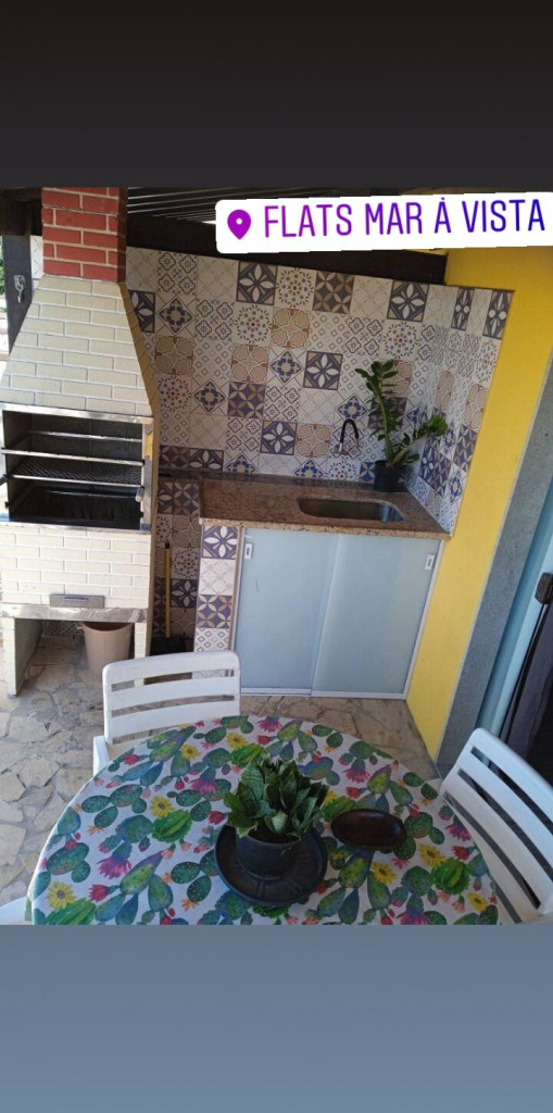 Flats mobiliados,com vista panorâmica p o mar e a Ilha Feia,sala/coz americana(sofá cama p 2 pessoas,ventilador de teto,coz com geladeira, fogão, microondas sanduicheira, cafeteira, liquidificador.Quarto com guarda roupas,tv de led 32\\\",cama Queen,ar condicionado split,varanda com mesa e 4 cadeiras e 2 espreguiçadeiras.