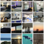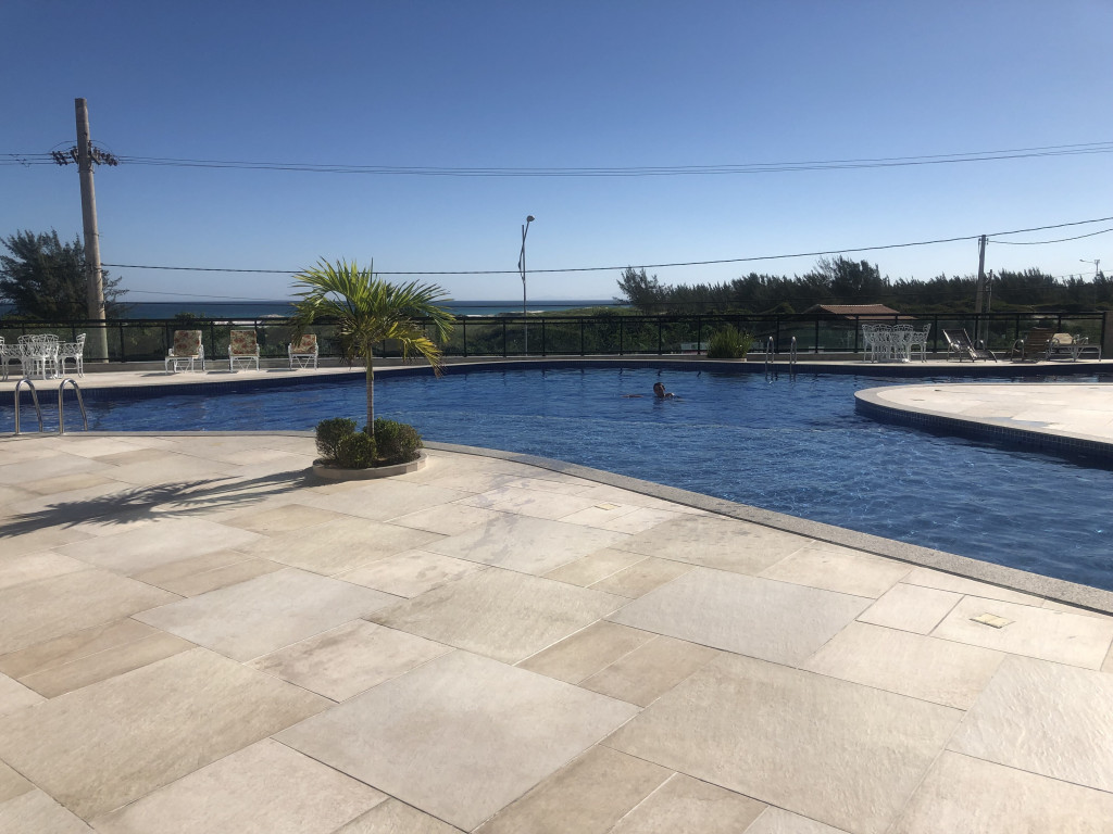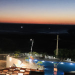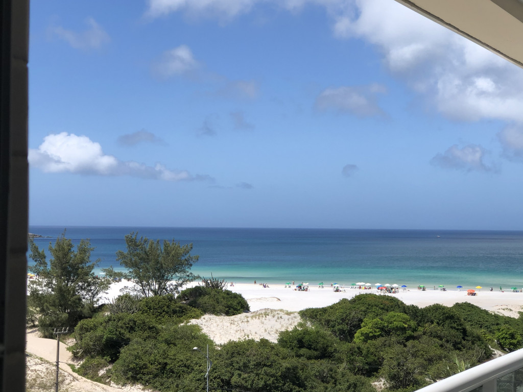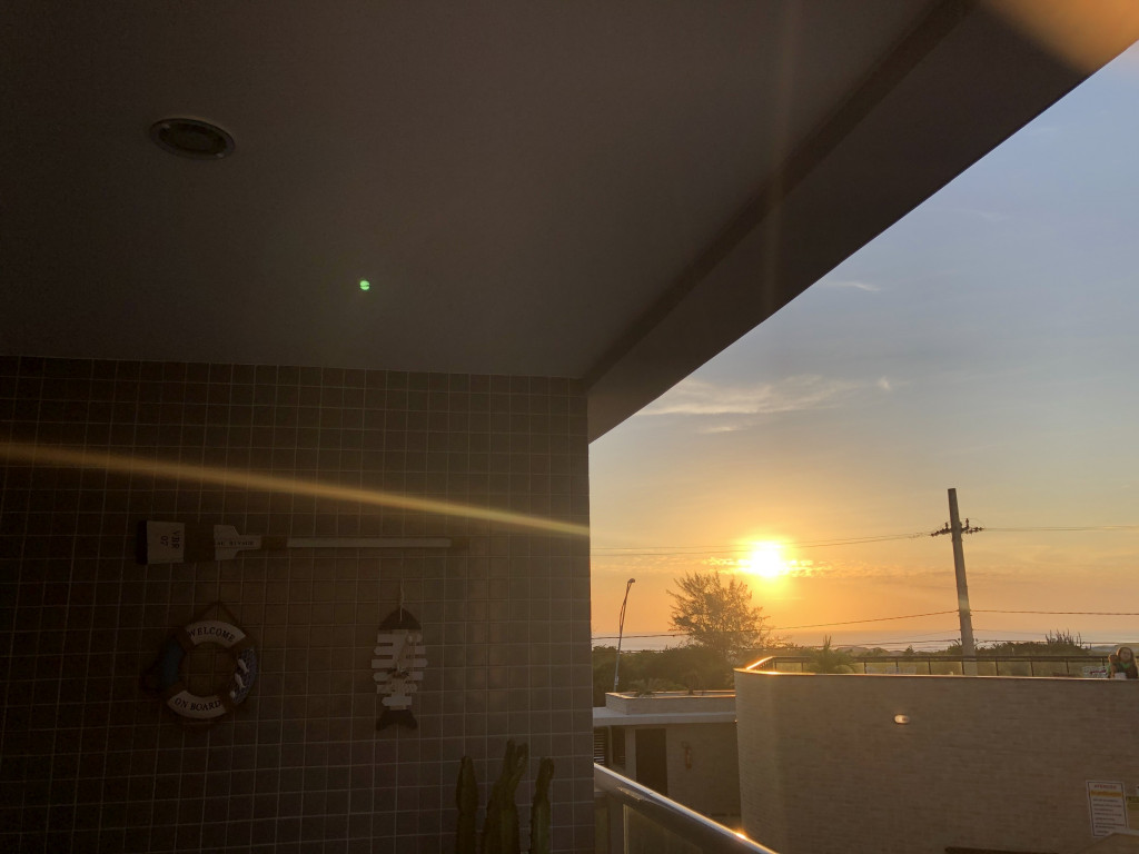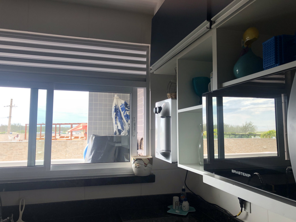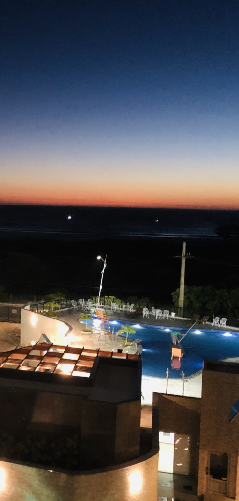 Churrasqueira na varanda do apartamento exclusiva com vista do por do sol do mar e da piscina.